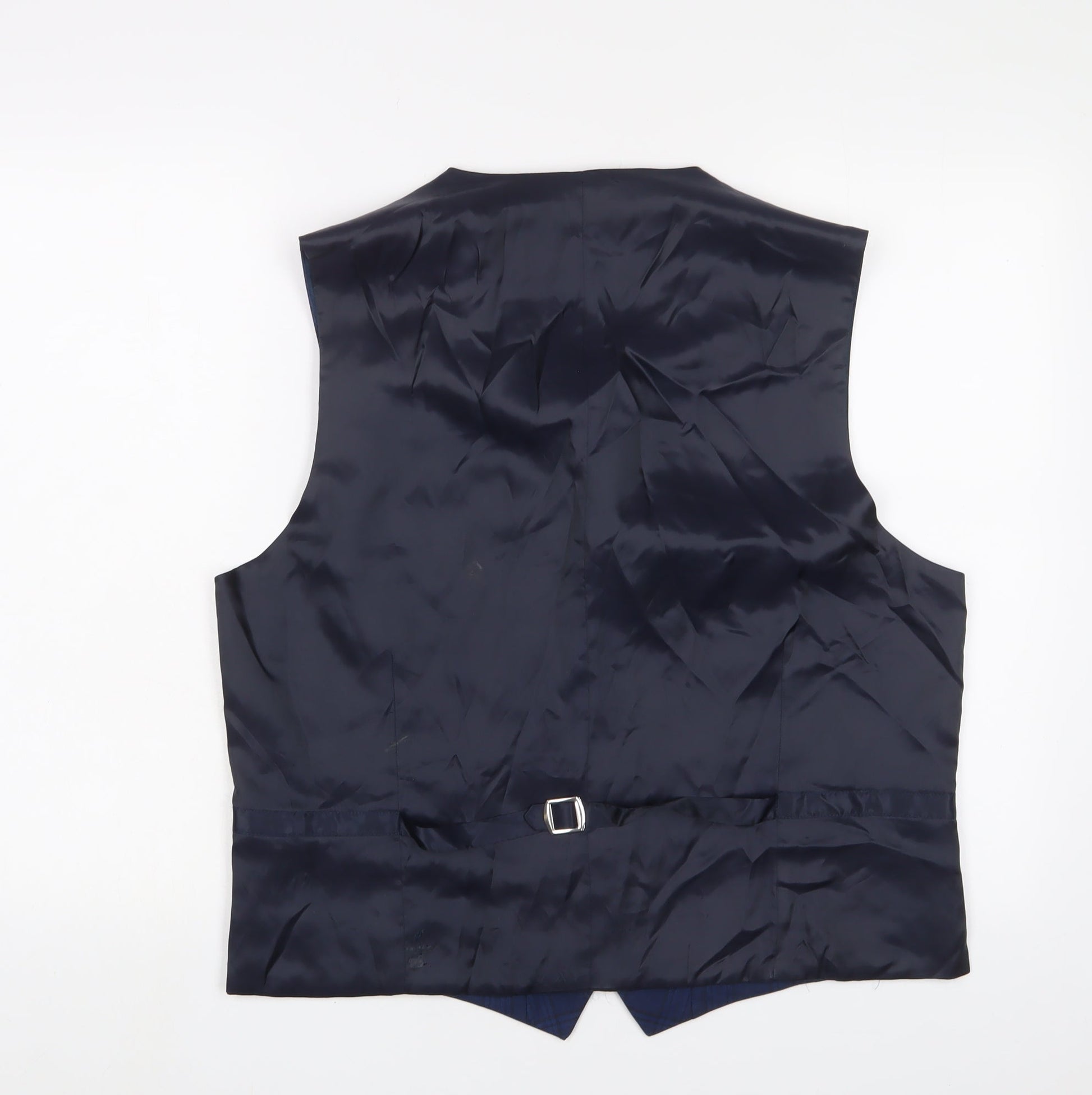 Lambretta Mens Blue Plaid Polyester Jacket Suit Waistcoat Size 44 Regular