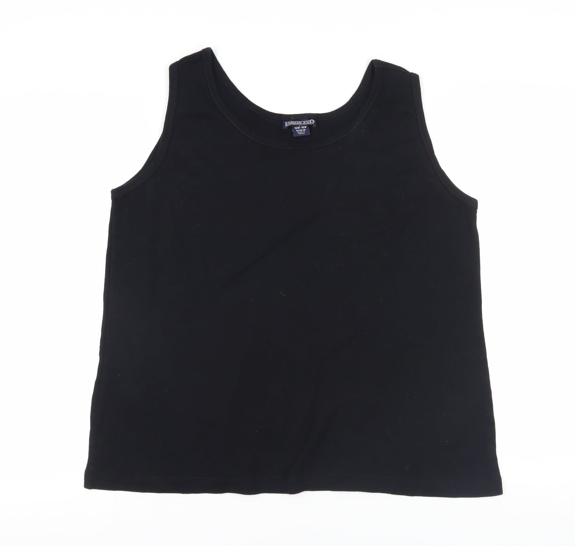 Lands' End Black Cotton Tank, Size 16 Plus, Casual Wear