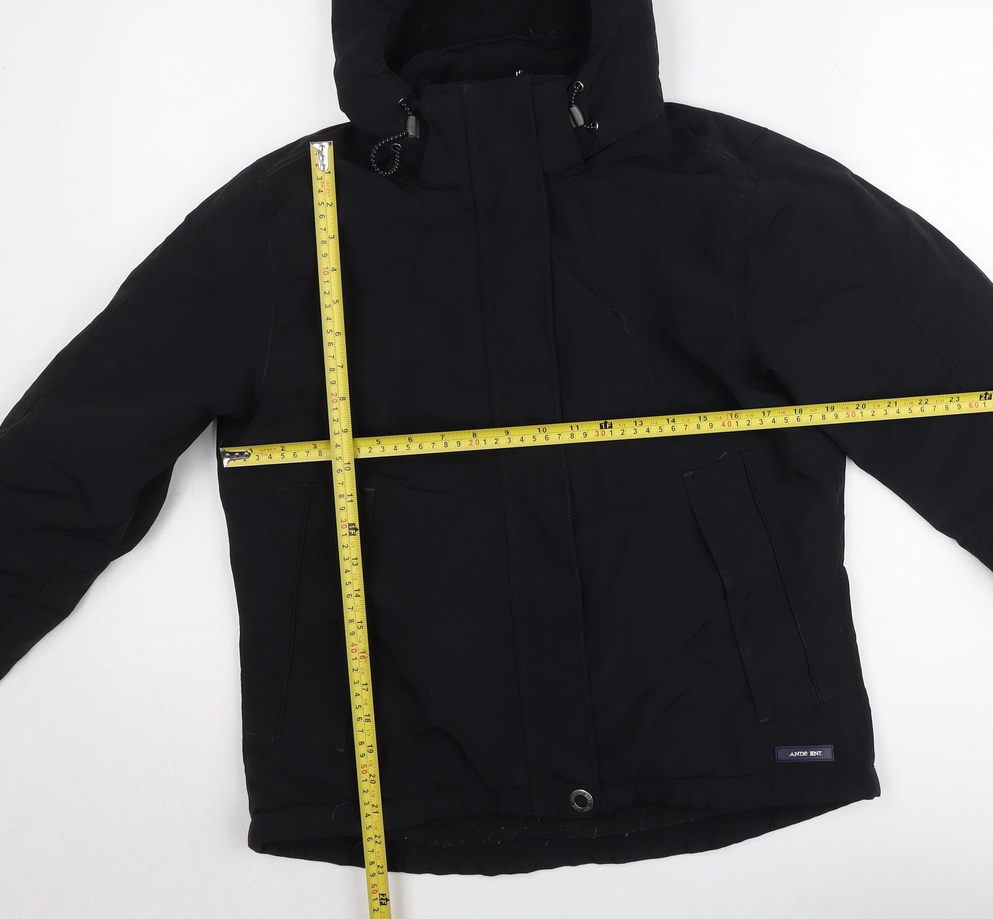Lands' End Men's Black XS Hooded Parka Jacket Water Resistant
