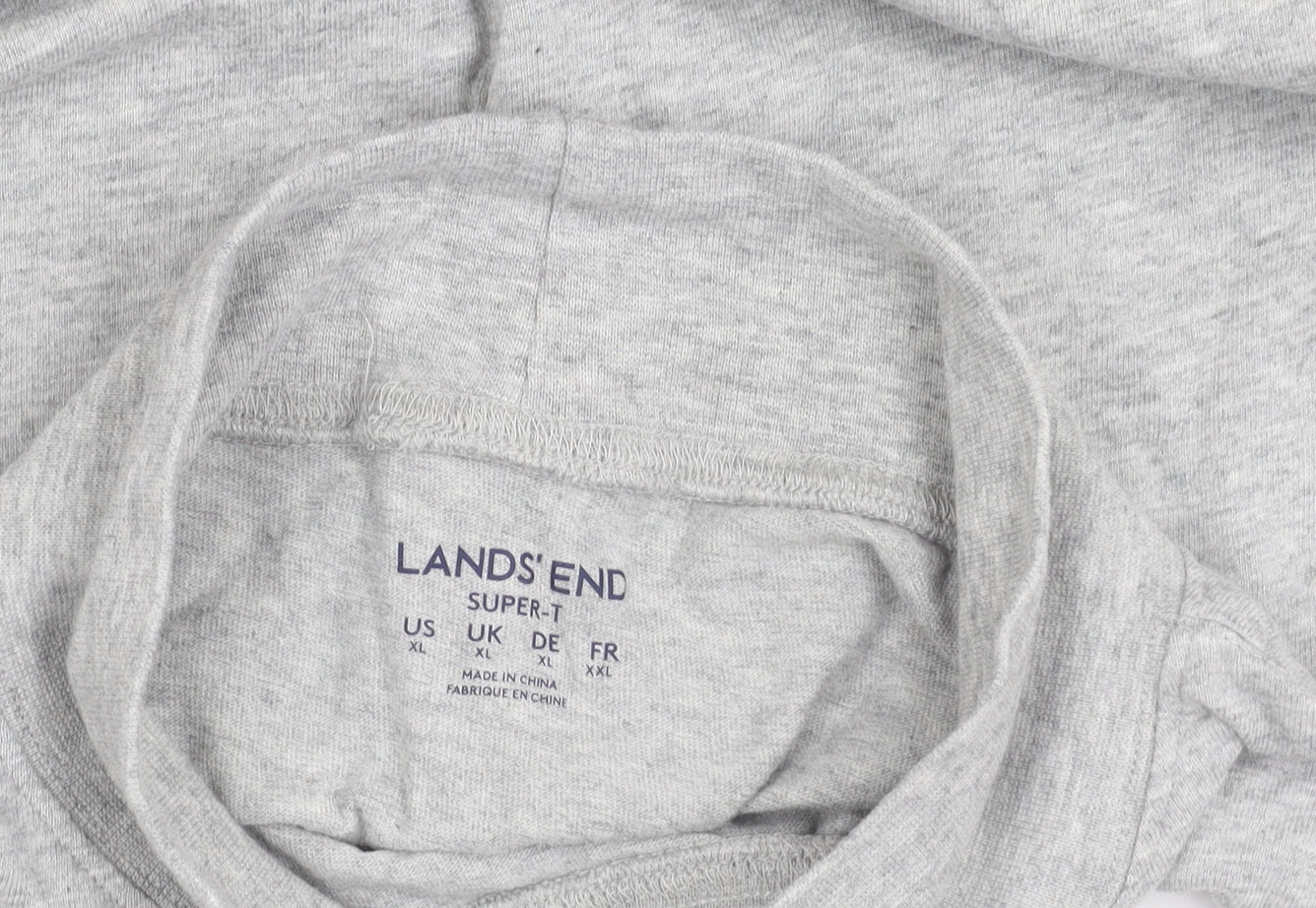 Lands' End Men's Grey XL Mock Neck Cotton Pullover Jumper