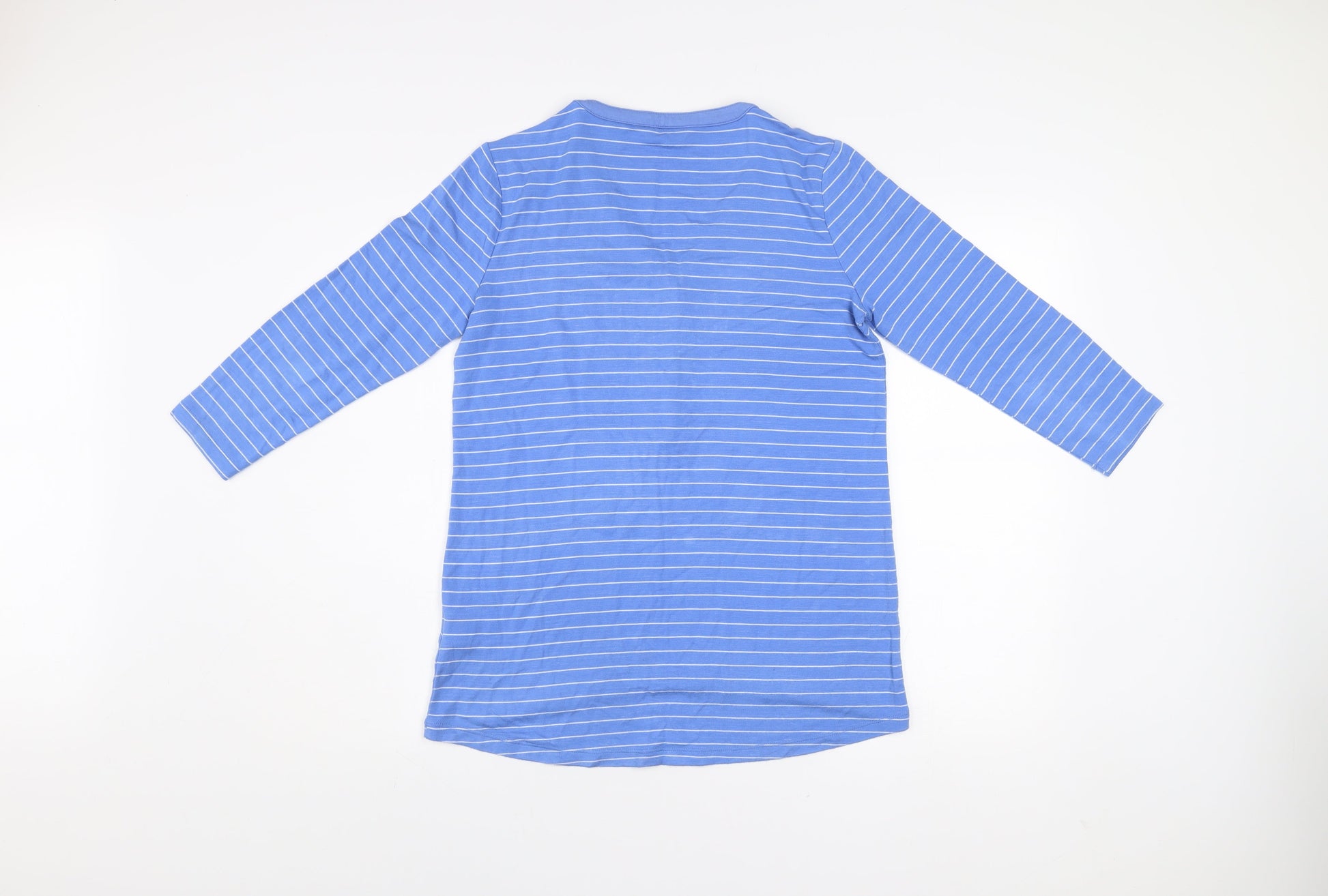 Lands' End Women Blue Striped 3/4 Sleeve V-Neck Henley Top XS