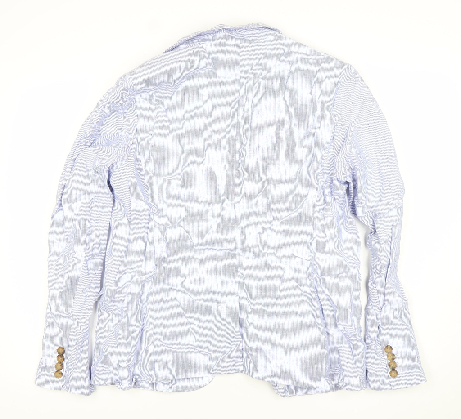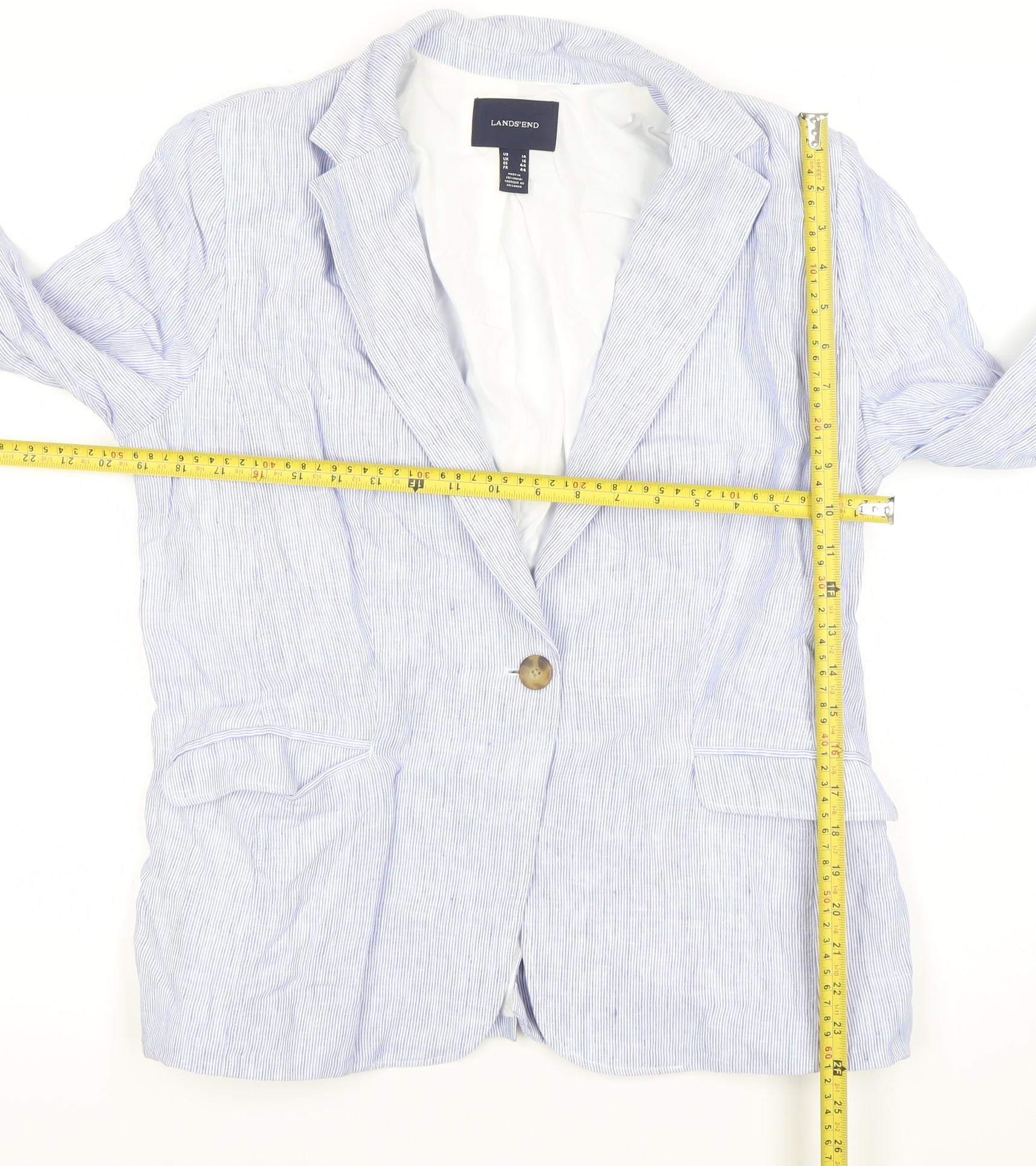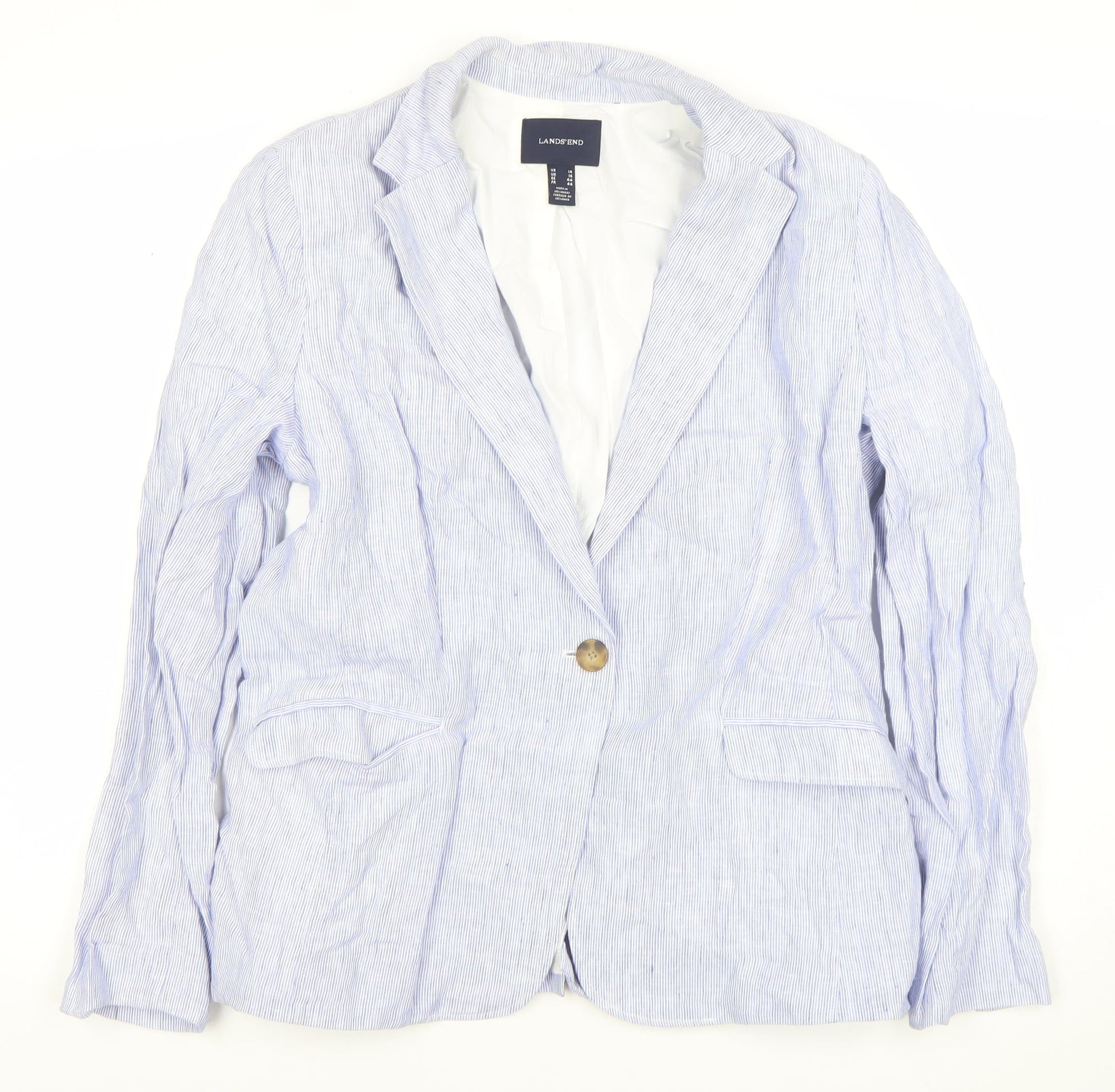 Lands' End Women Blue Striped Linen Blend Blazer Jacket UK 16
