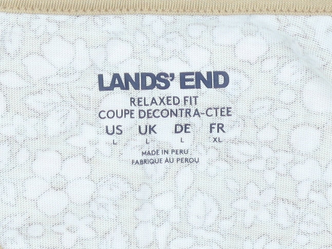 Lands' End Women's Beige Floral Long Sleeve T-Shirt L