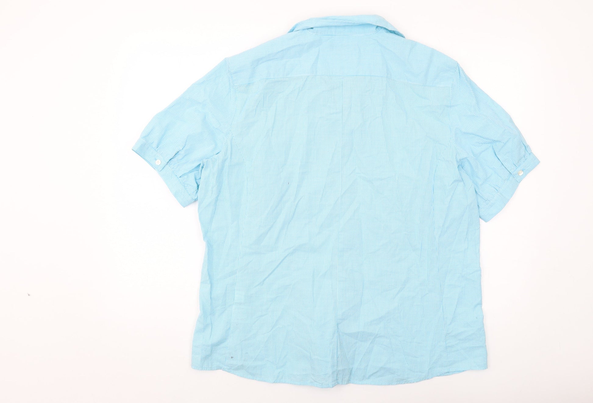 Lands' End Womens Blue Check Cotton Basic Button-Up Size 18 Collared