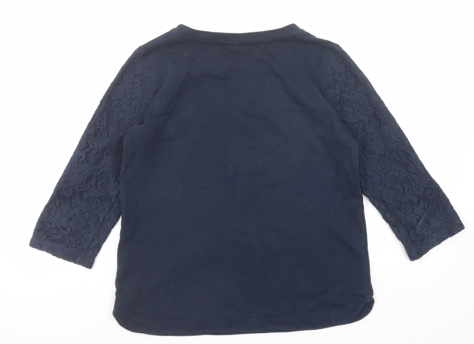 Lands' End Womens Blue Cotton Basic T-Shirt Size XS Round Neck - Lace Sleeve