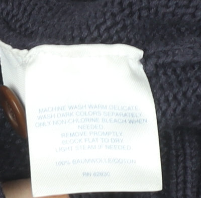 Lands' End Women's Blue Cotton Crew Neck Button Pullover Jumper L