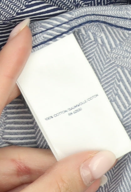 Lands' End Womens Blue Floral Cotton Button-Up Shirt Size 14 Petite