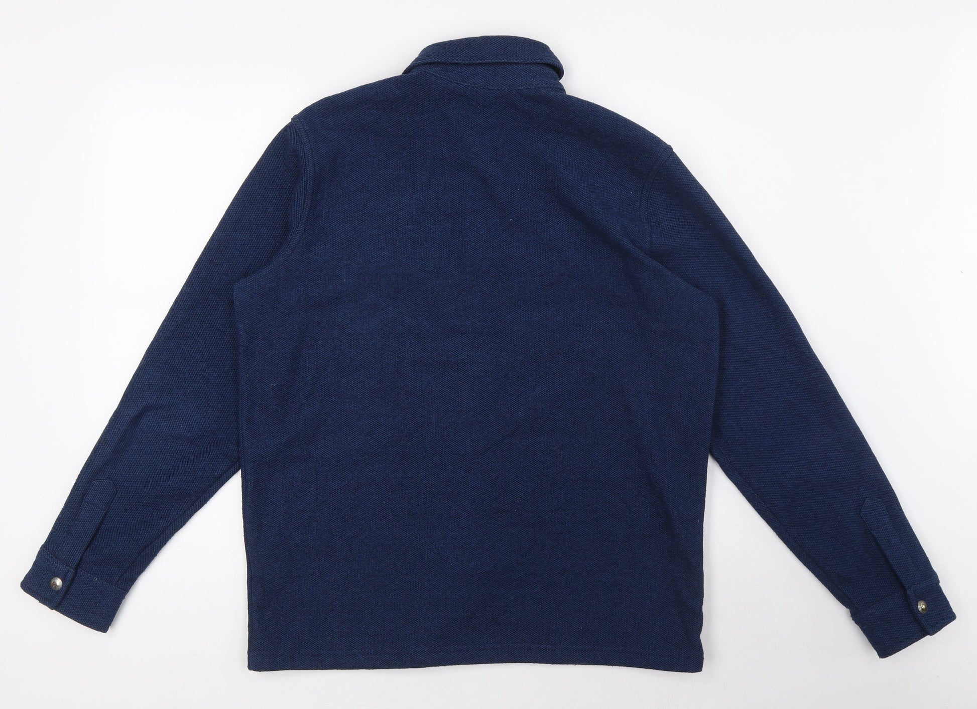 Lands' End Womens Blue Polyester Basic Button-Up Size S Collared
