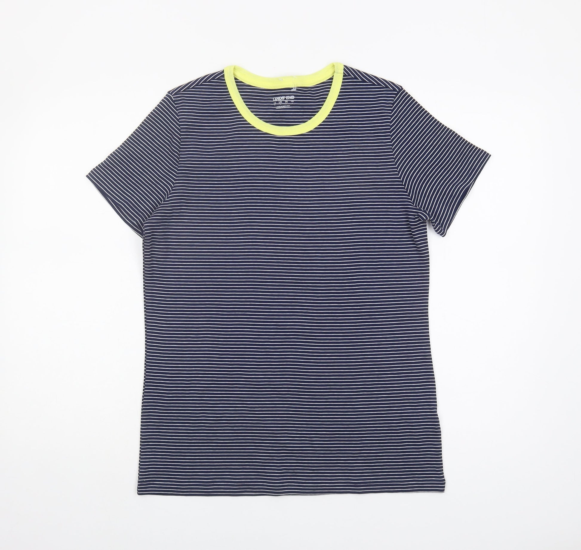 Lands' End Women's Blue Striped T-Shirt, M, Short Sleeve