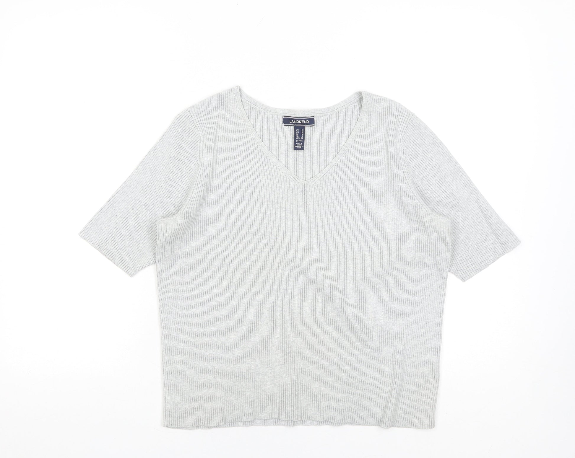 Lands' End Women's Grey V-Neck Knit Top, Size M