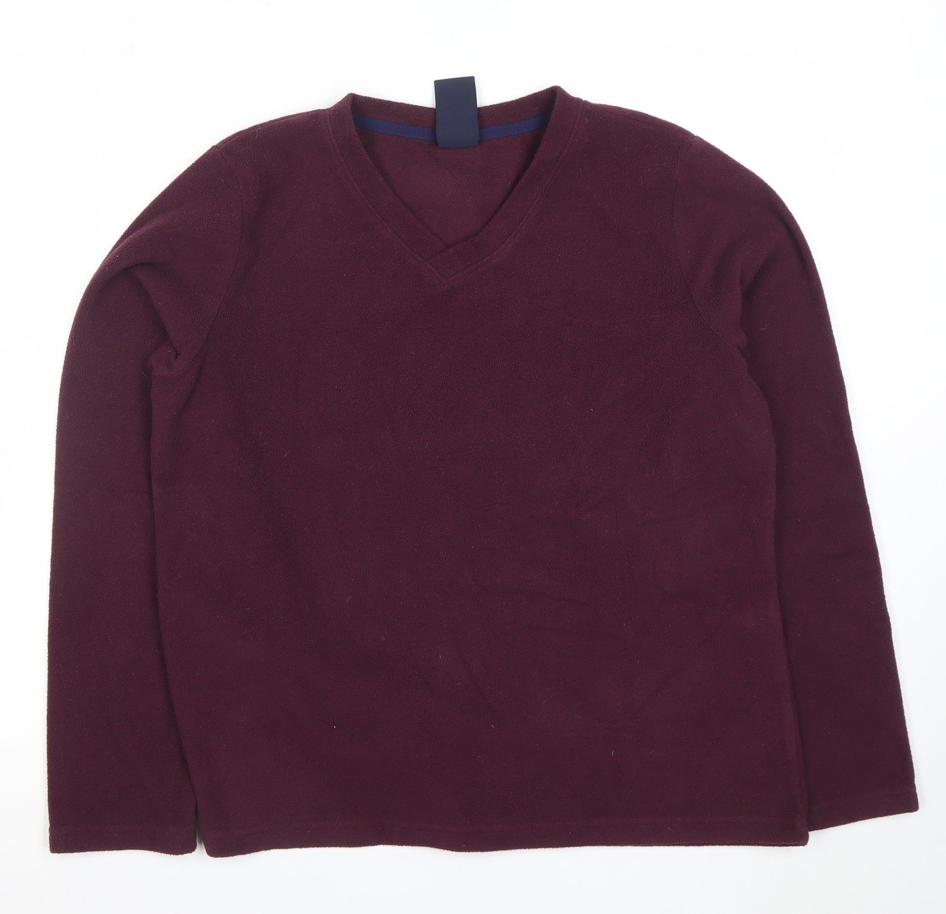 Lands' End Women's Petite Burgundy Fleece V-Neck Pullover Sweatshirt Size S