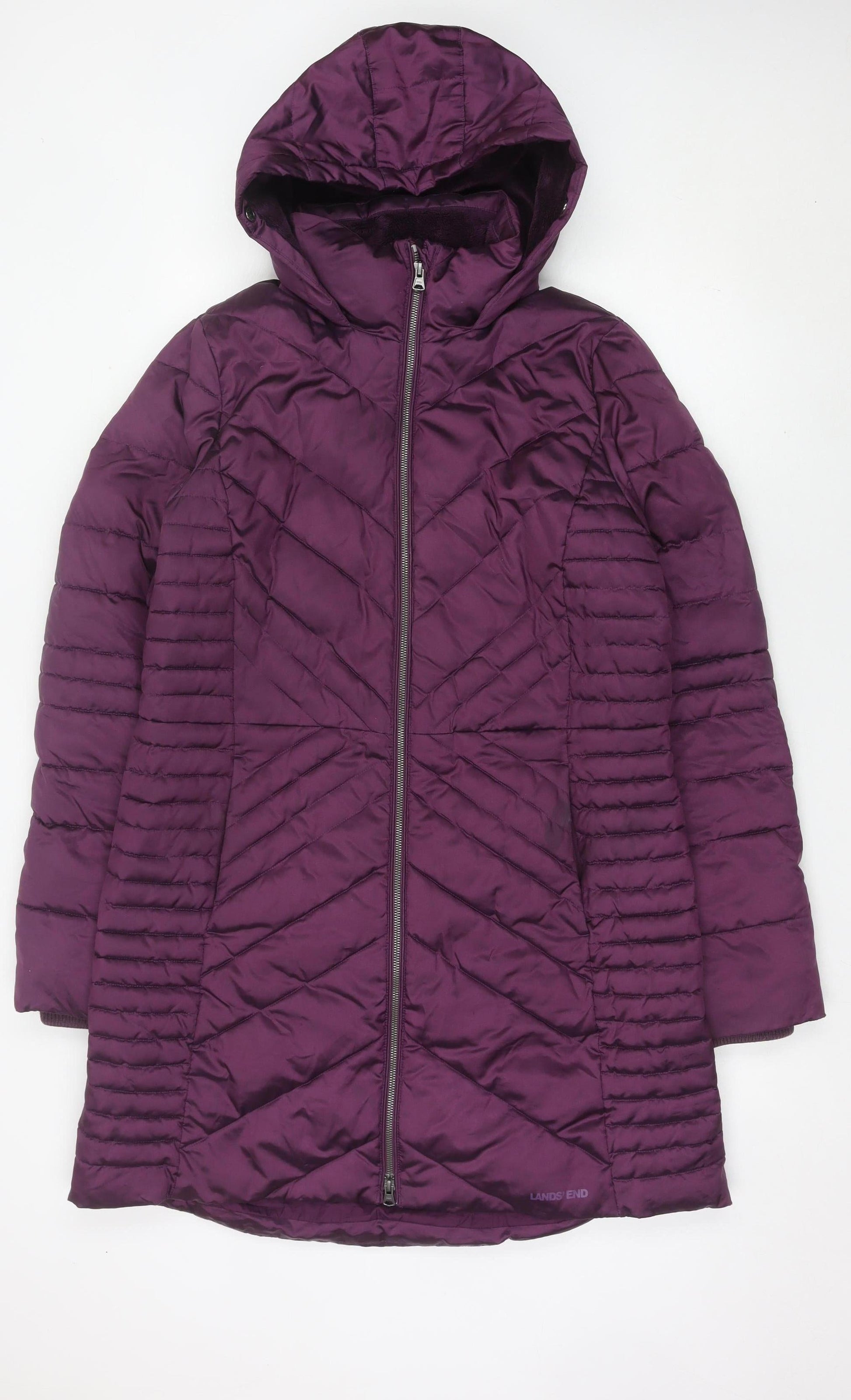 Lands' End Womens Purple Tall Size 12 Hooded Puffer Jacket
