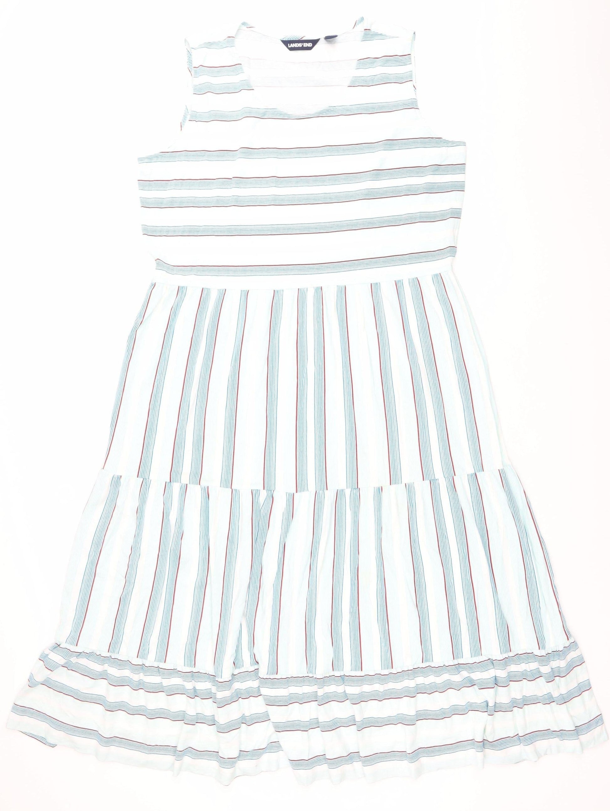 Lands' End Womens White Blue Striped Midi A-Line Dress XL