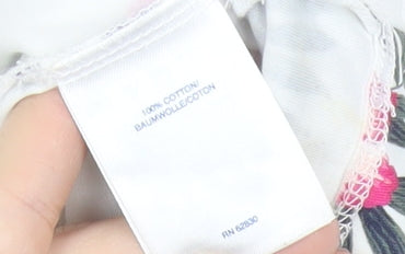 Lands' End Womens White Floral T-Shirt Size 10 Short Sleeve Cotton