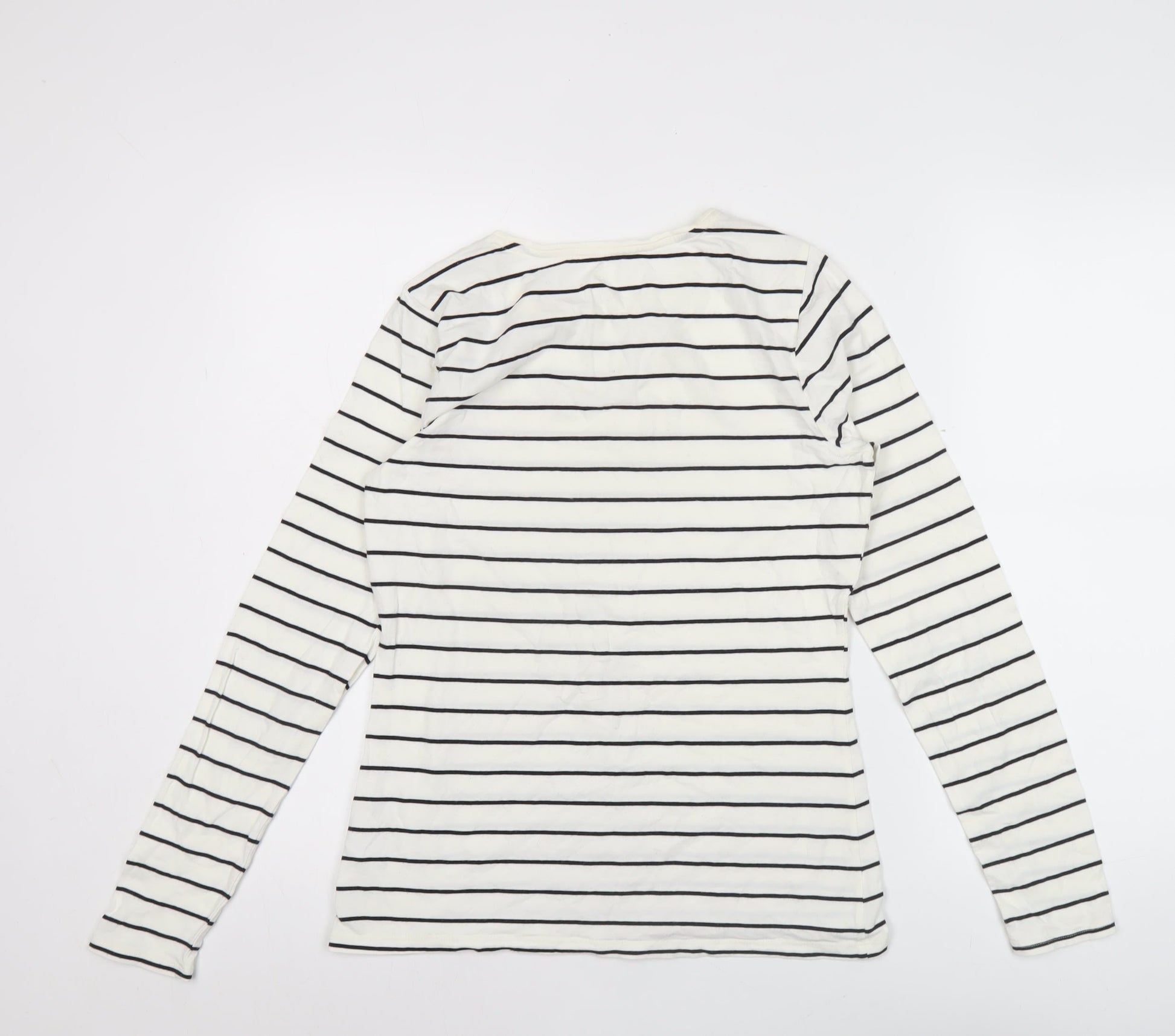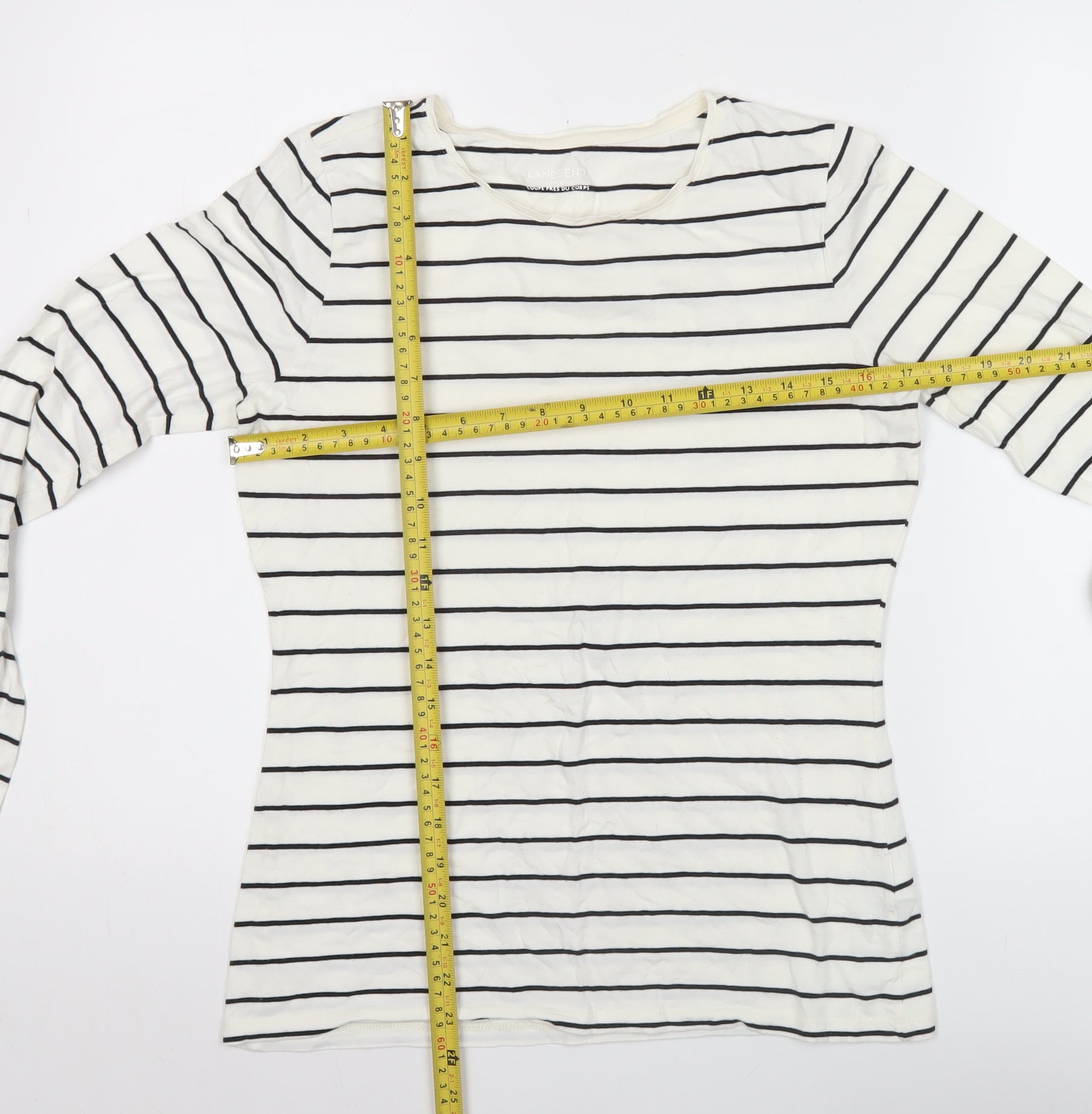 Lands' End Womens White Striped Long Sleeve Cotton T-Shirt M