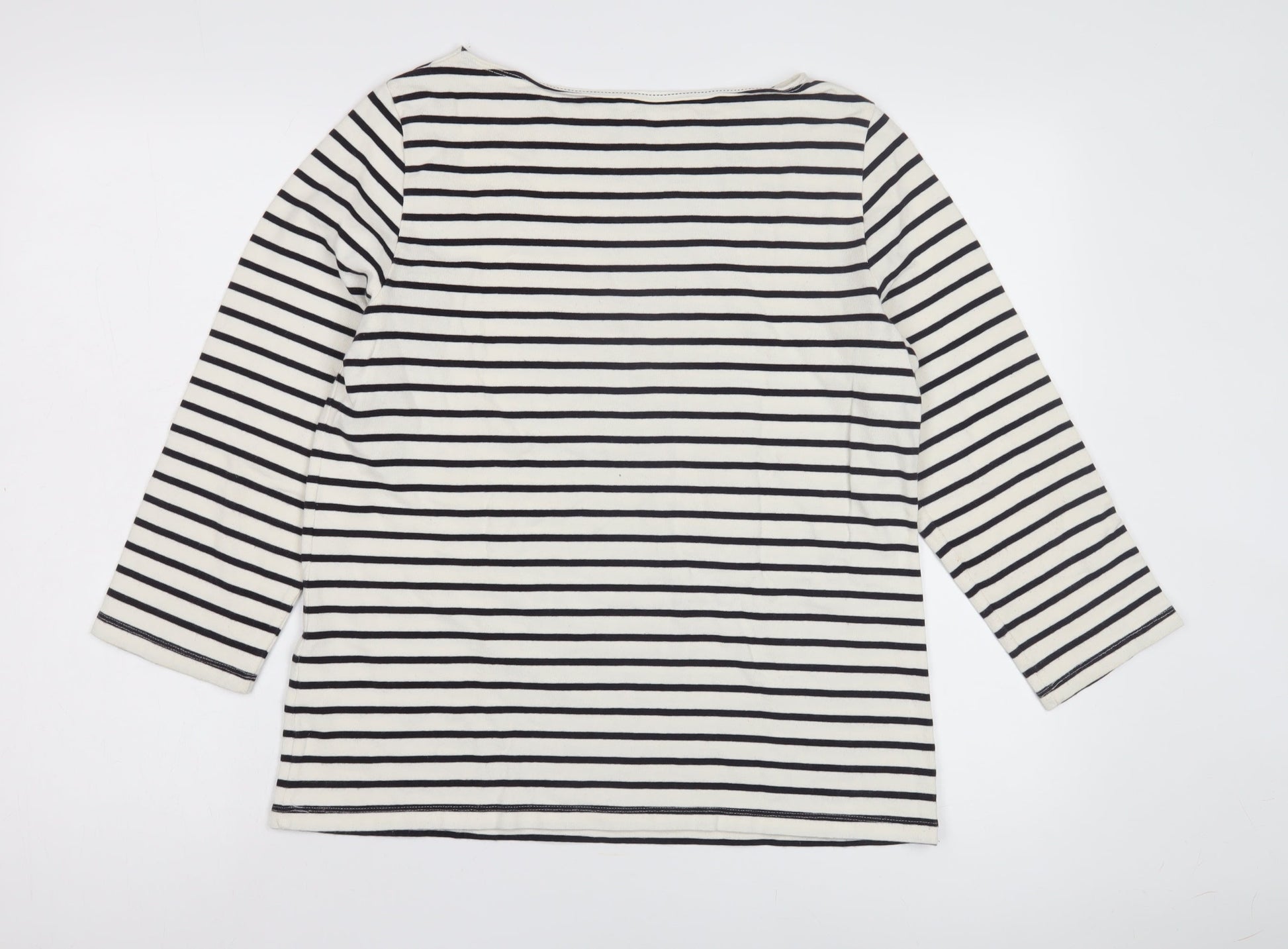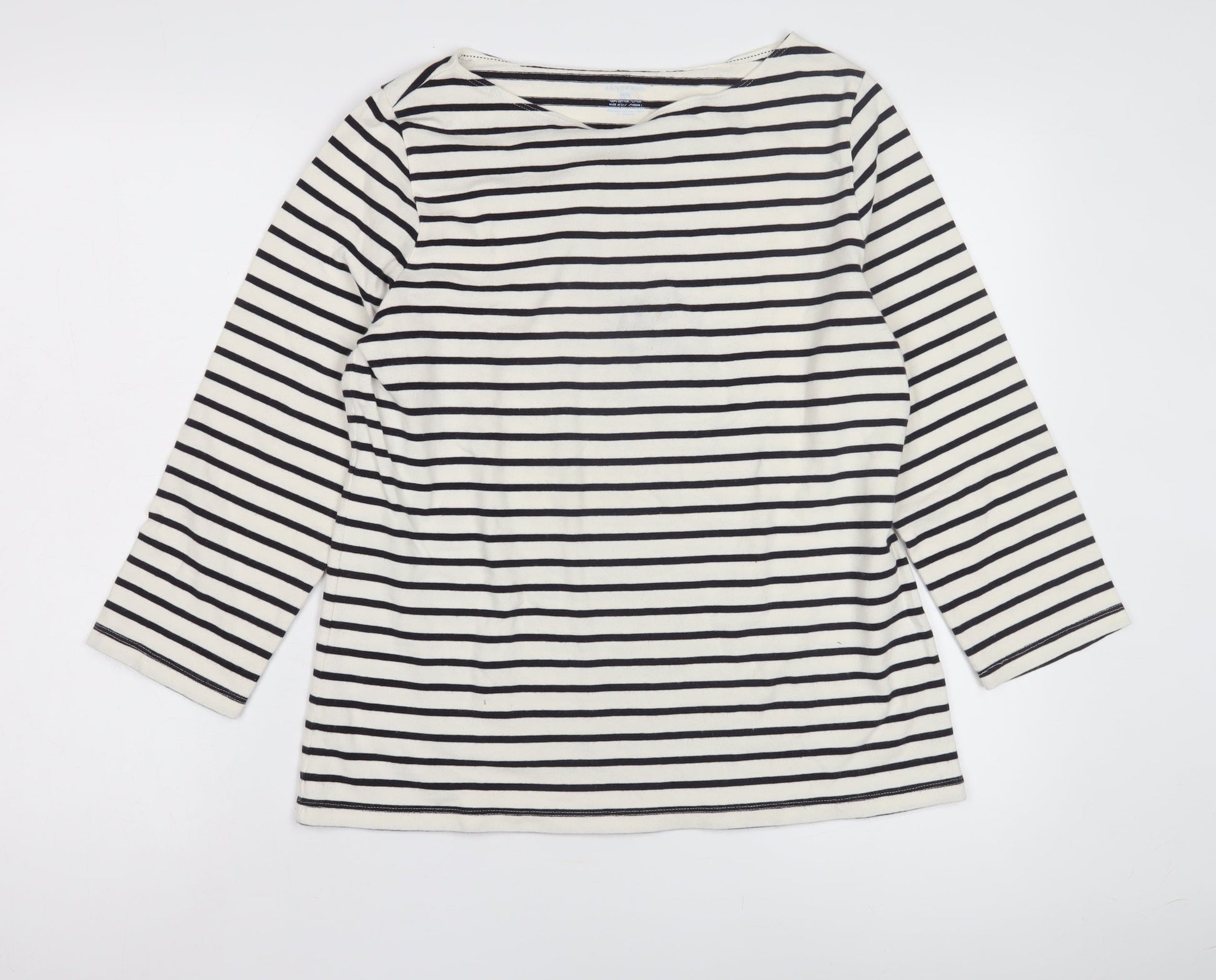 Lands' End Women's White Striped T-Shirt M 3/4 Sleeve