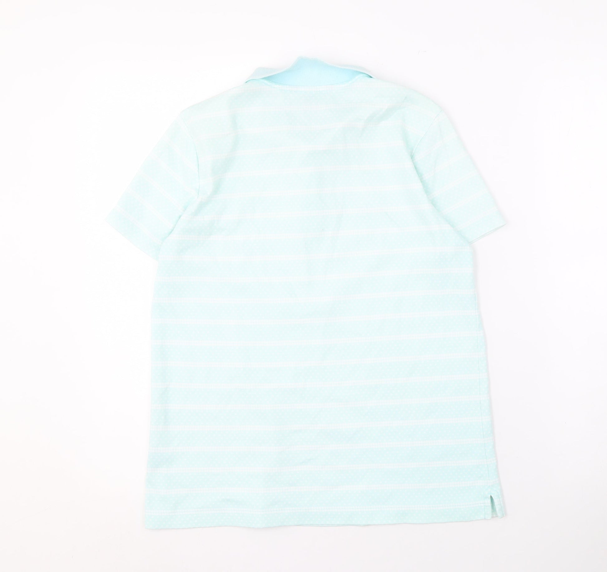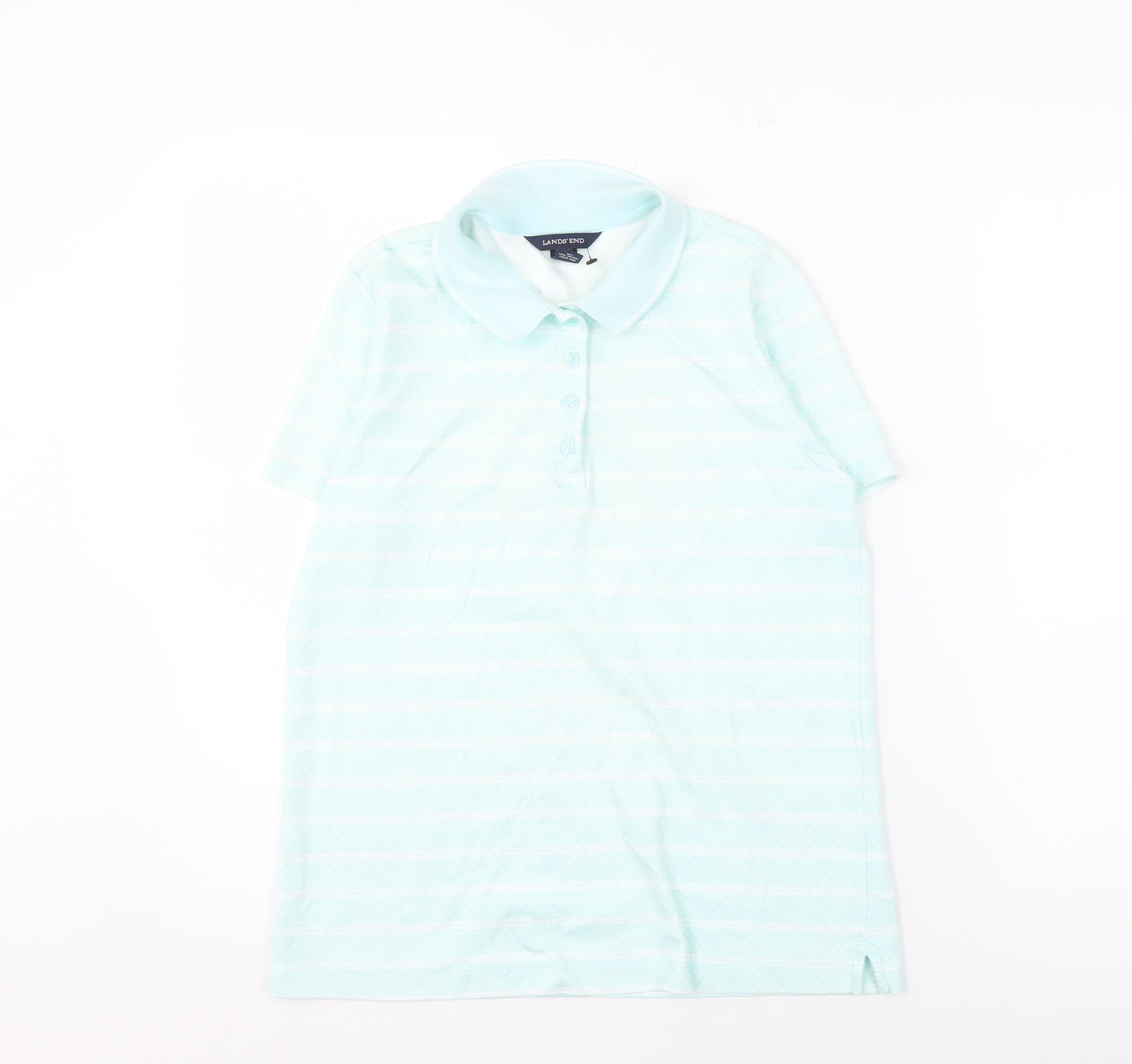 - Keywords: Lands' End Women's XS Blue Striped Polo Shirt Cotton Collared Button Closure