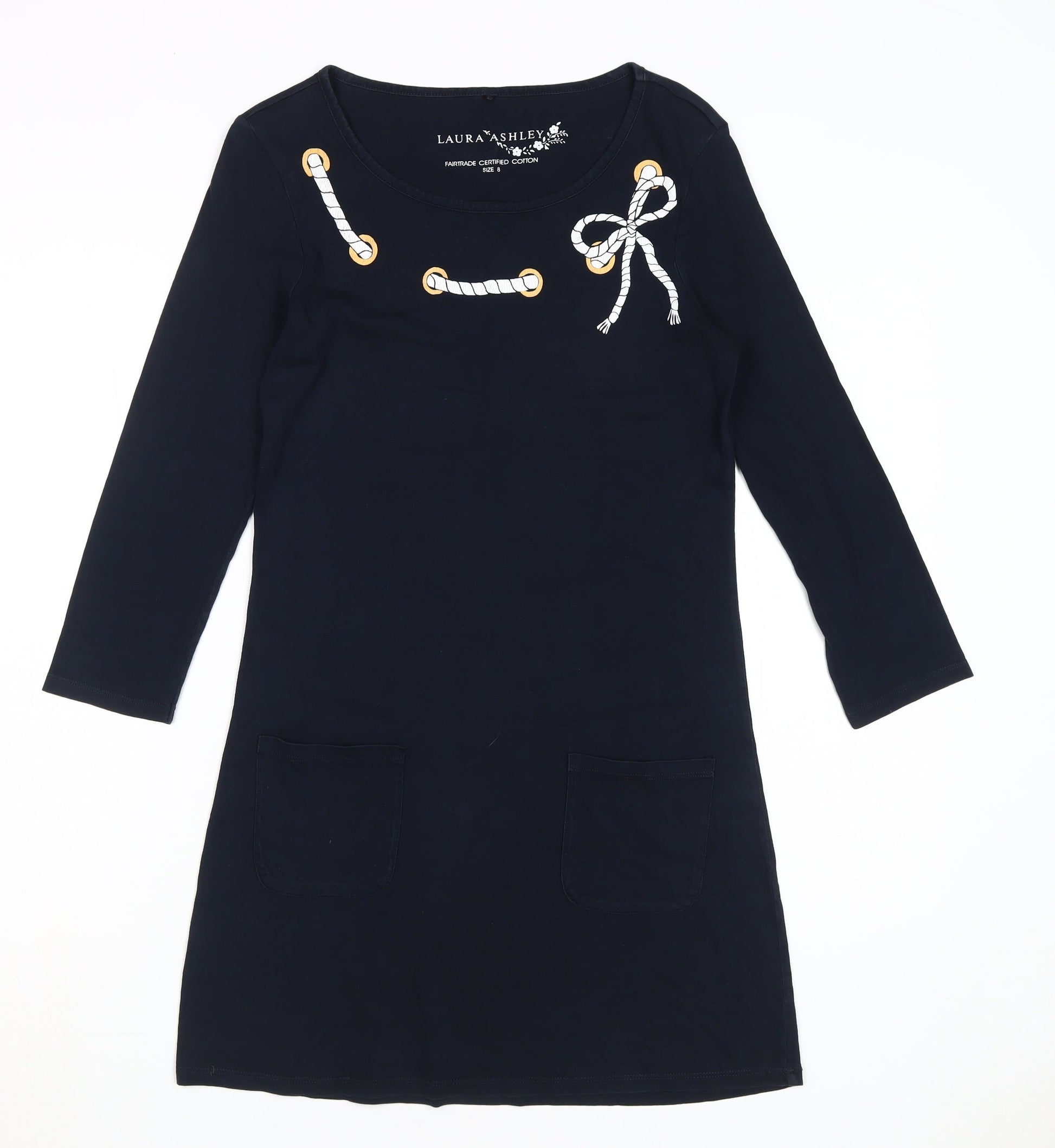 Laura Ashley Black Women's Dress Size 8, Bow Accent, Pockets