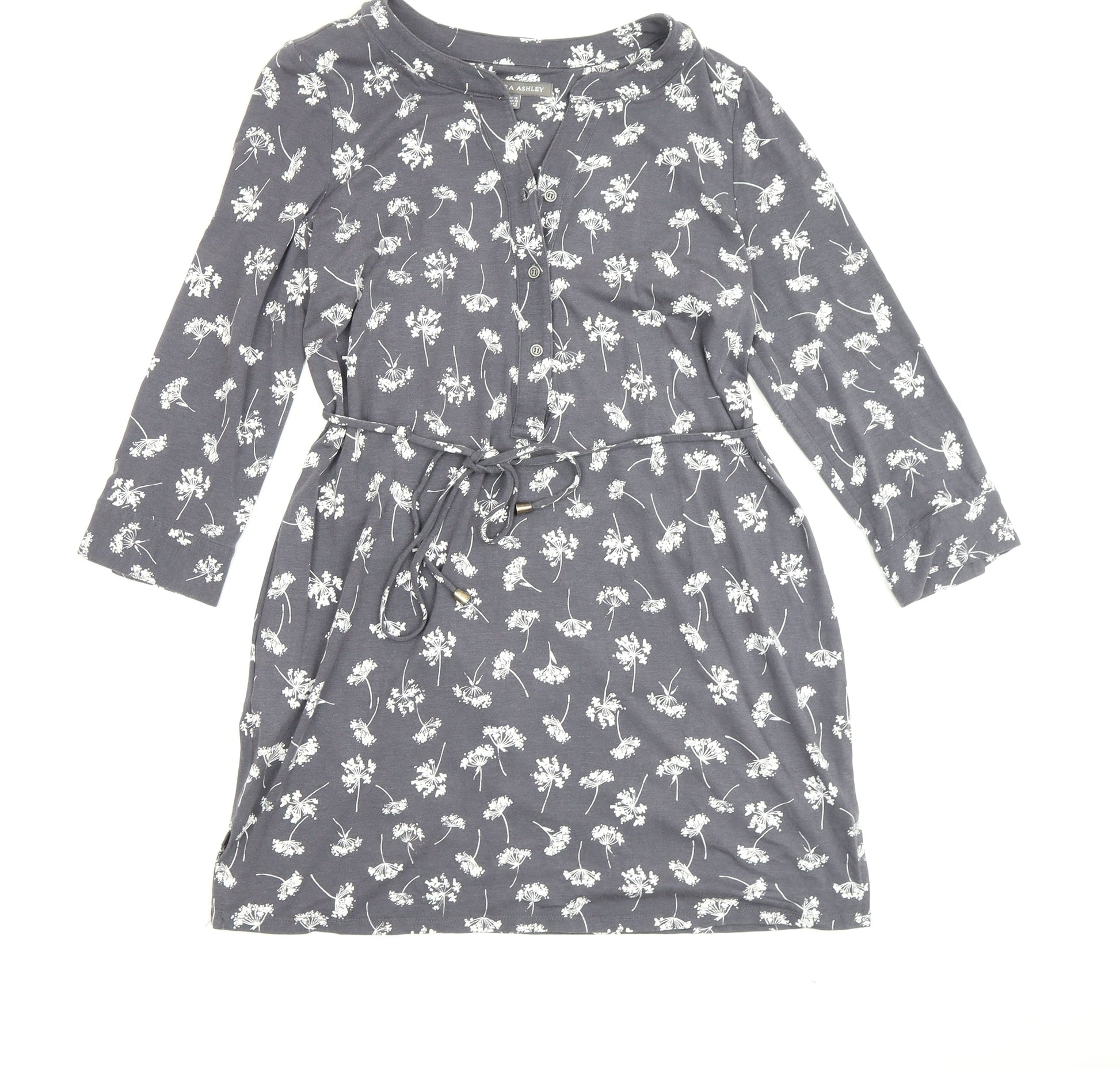 Laura Ashley Grey Floral Shirt Dress - Size 12