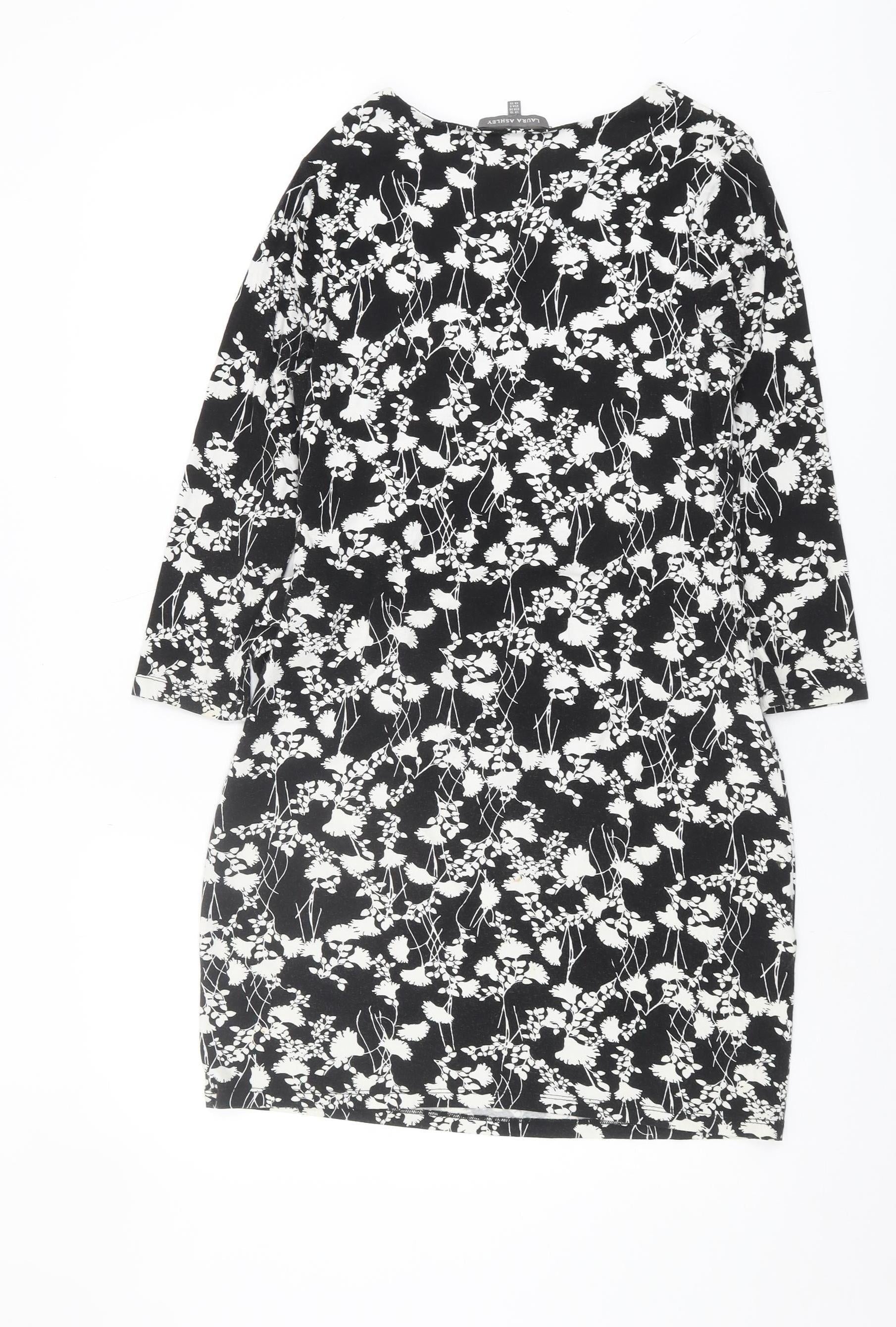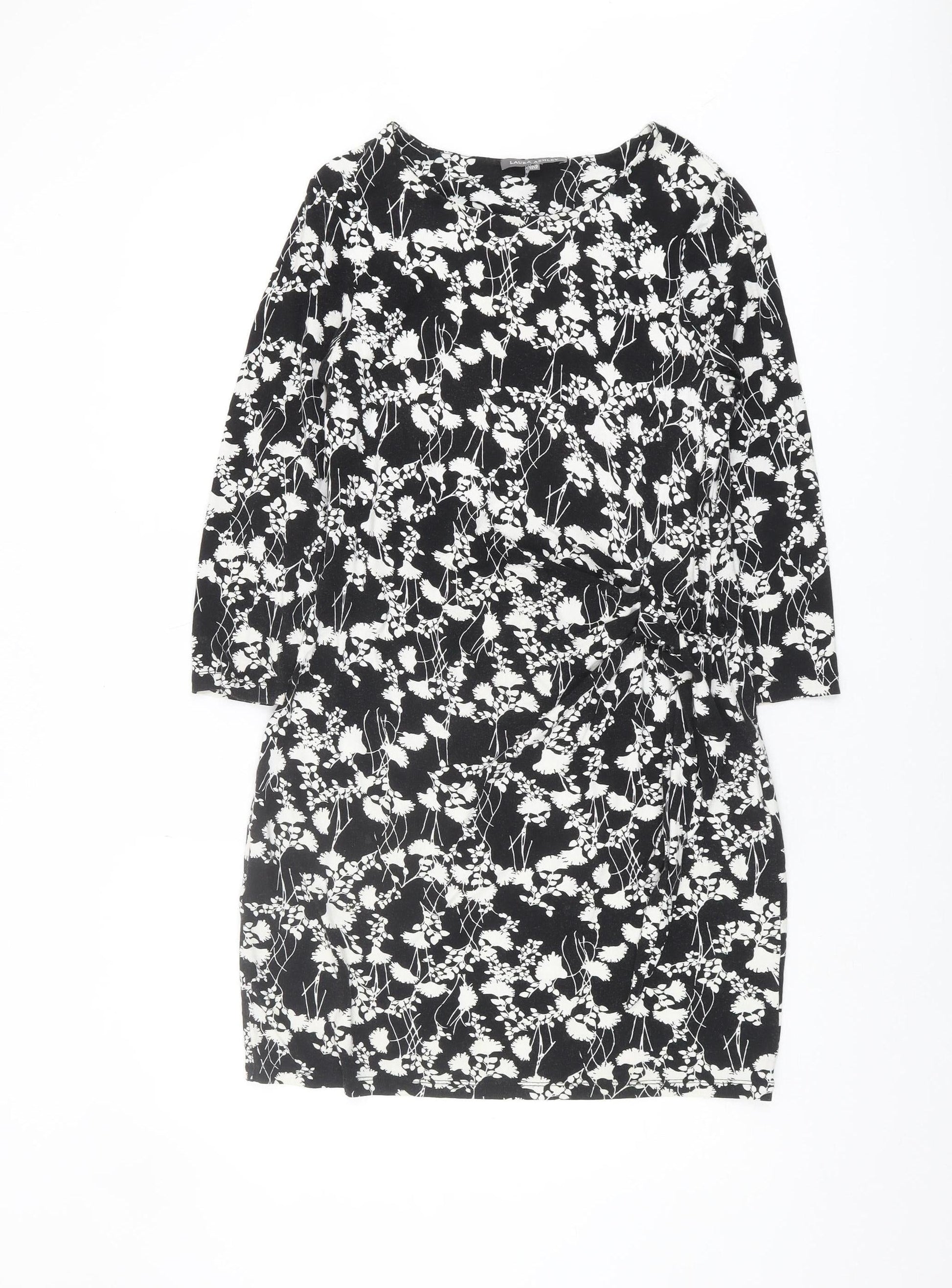 Laura Ashley Women Black Floral Shift Dress Size 10 Casual