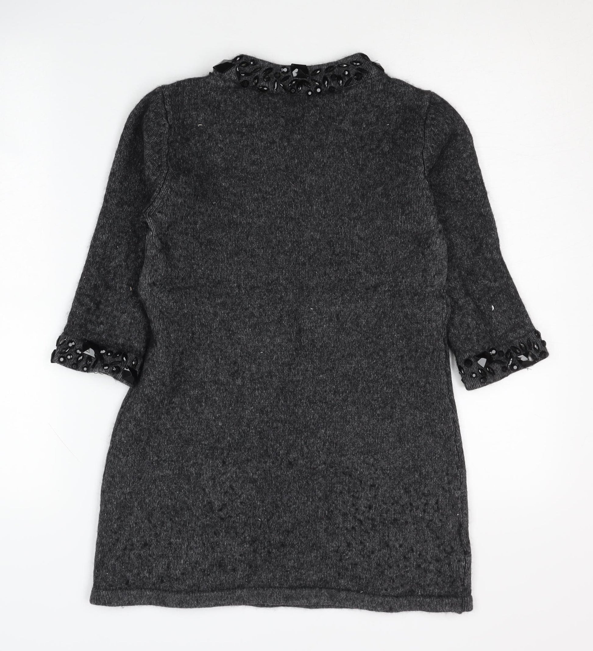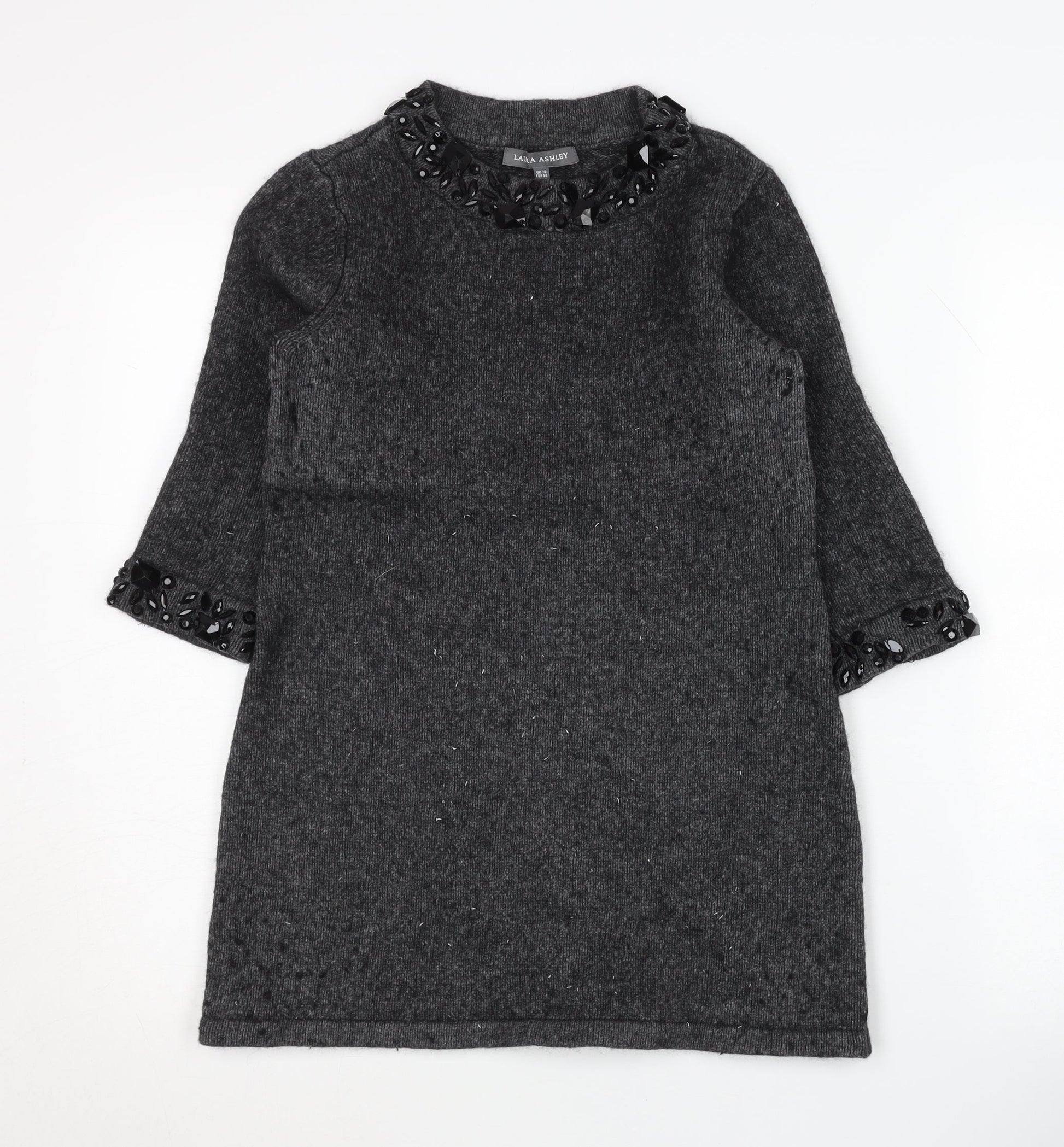 Laura Ashley Women’s Grey Beaded 3/4 Sleeve Jumper Size 10