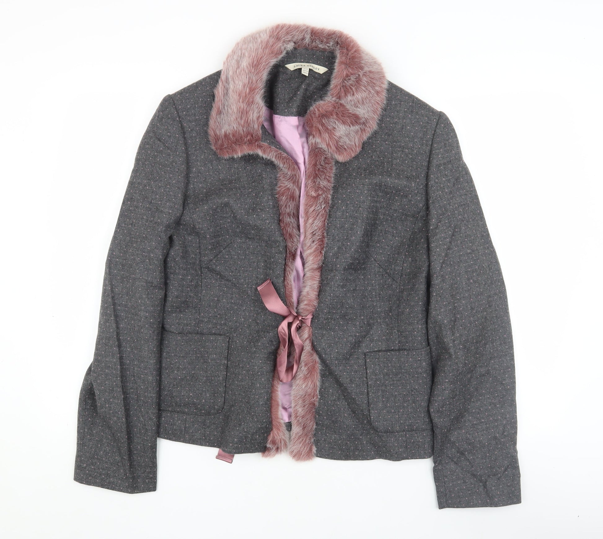 Laura Ashley Women’s Grey Blazer Faux Fur Collar Size 18