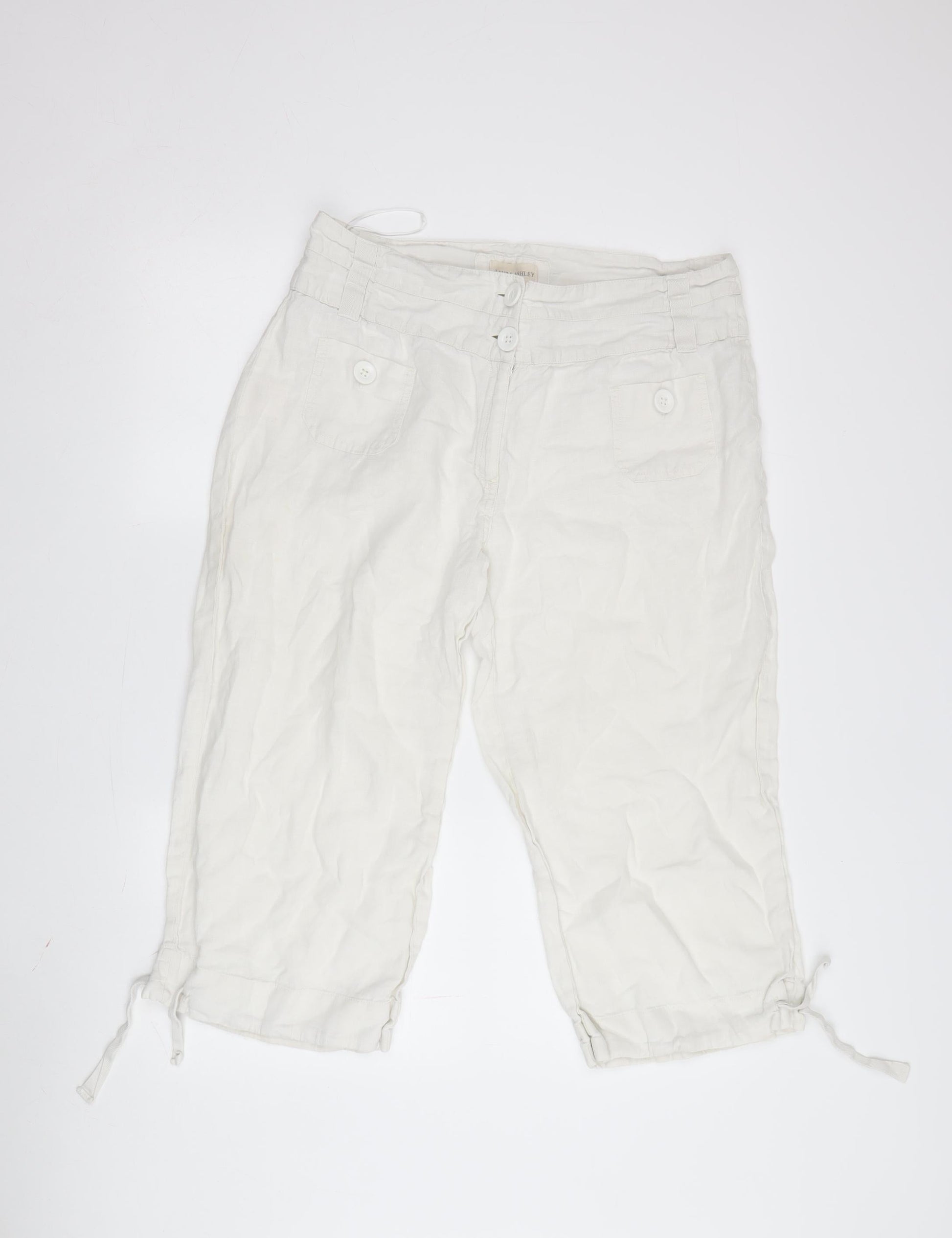 Laura Ashley Women’s Ivory Cropped Linen Trousers Size 14