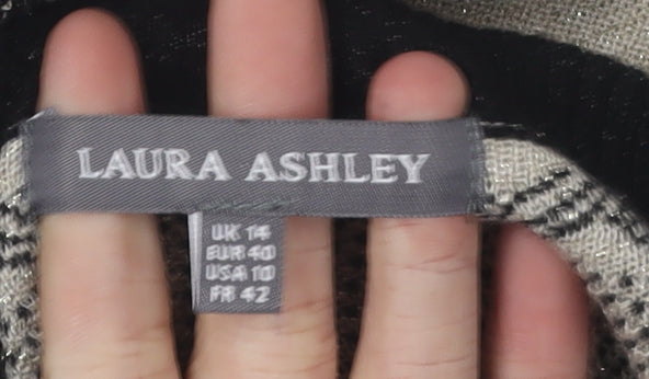 Laura Ashley Women's Beige Black Striped Pullover Jumper Size 14