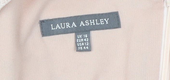 Laura Ashley Women's Beige Lace V-Neck Cap Sleeve Sheath Dress