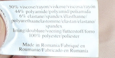 - Material Breakdown: 50% Viscose 44% Polyamide 6% Elastane