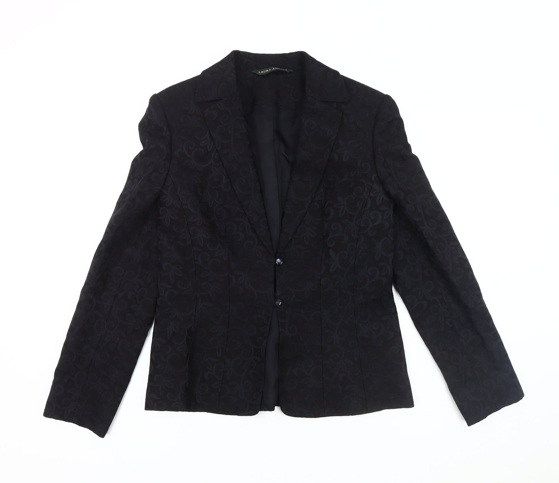 Laura Ashley Women's Black Floral Wool Blazer Size 10