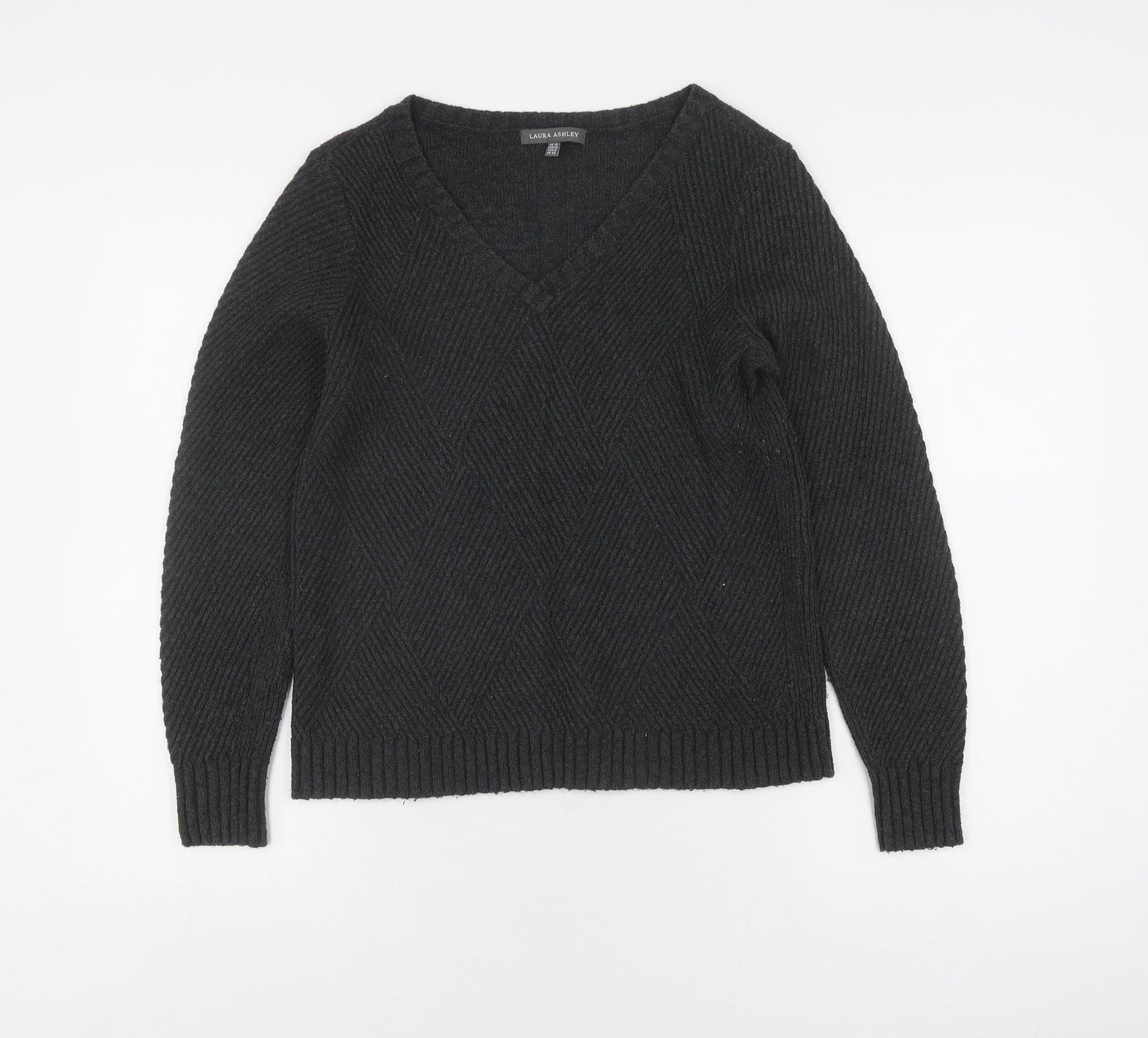 Laura Ashley Women's Black Pullover V-Neck Jumper Size 12