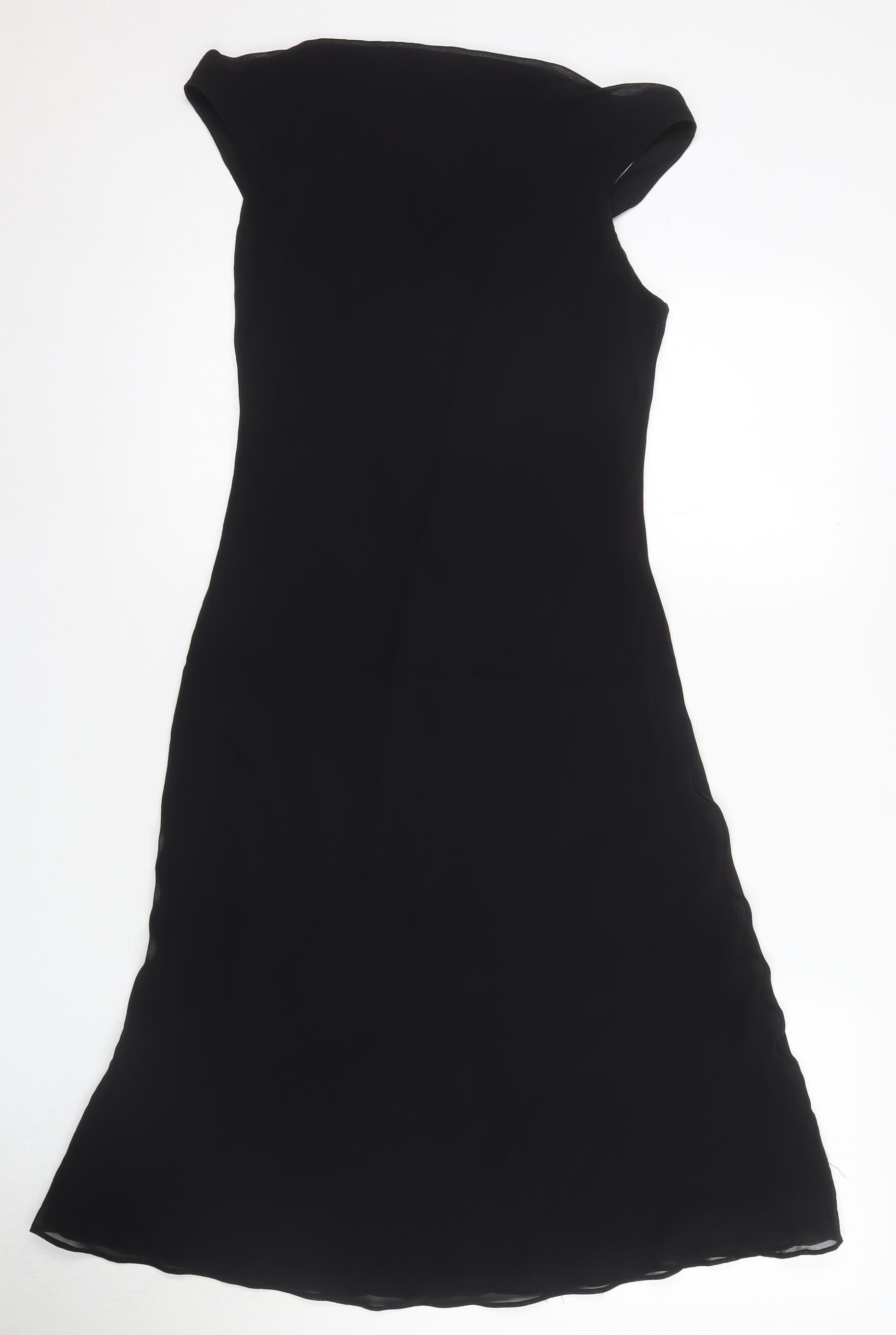 Laura Ashley Women's Black Silk Sheath Midi Dress Size 14