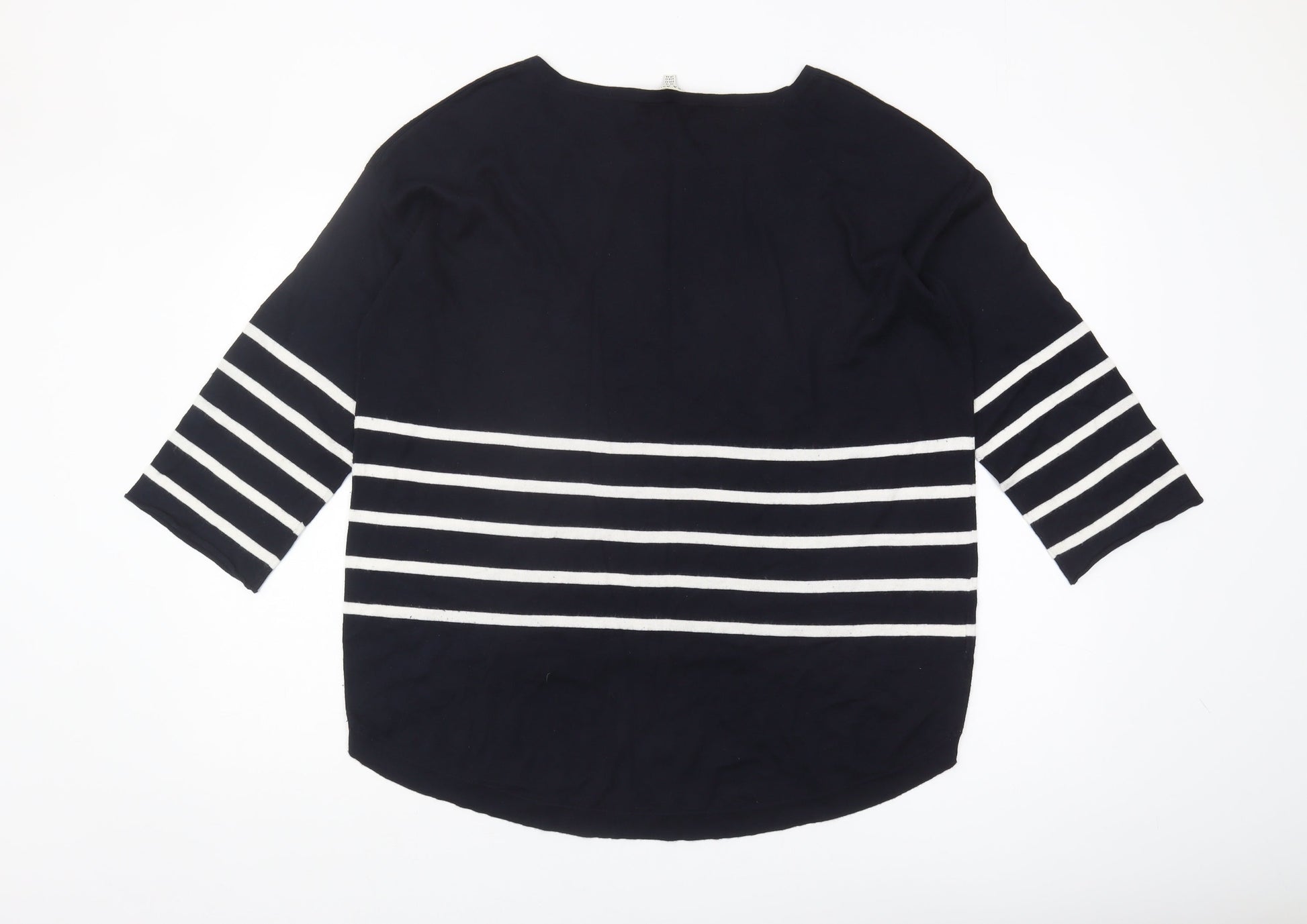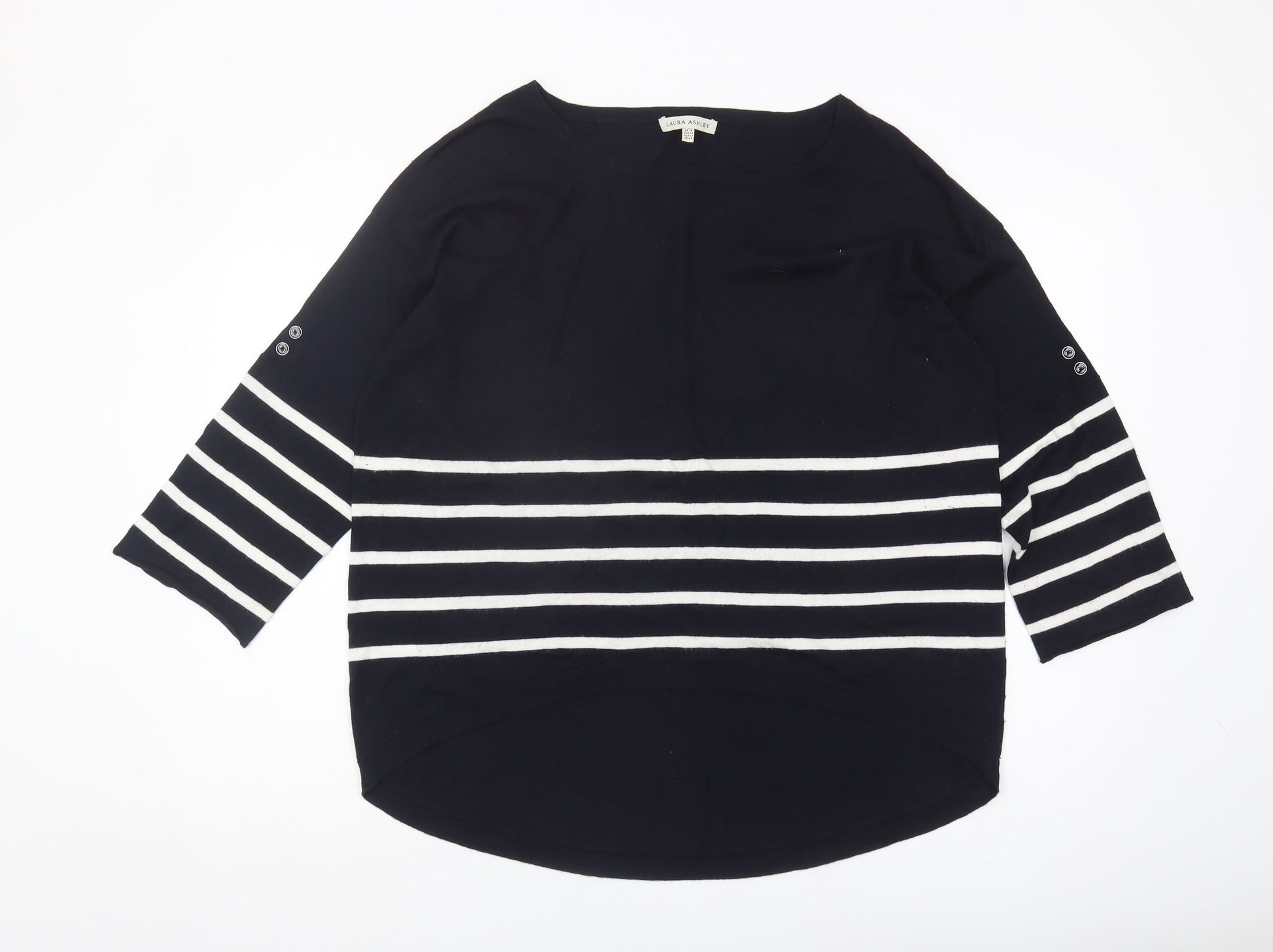 Laura Ashley Women's Black Striped Pullover Jumper Size 16