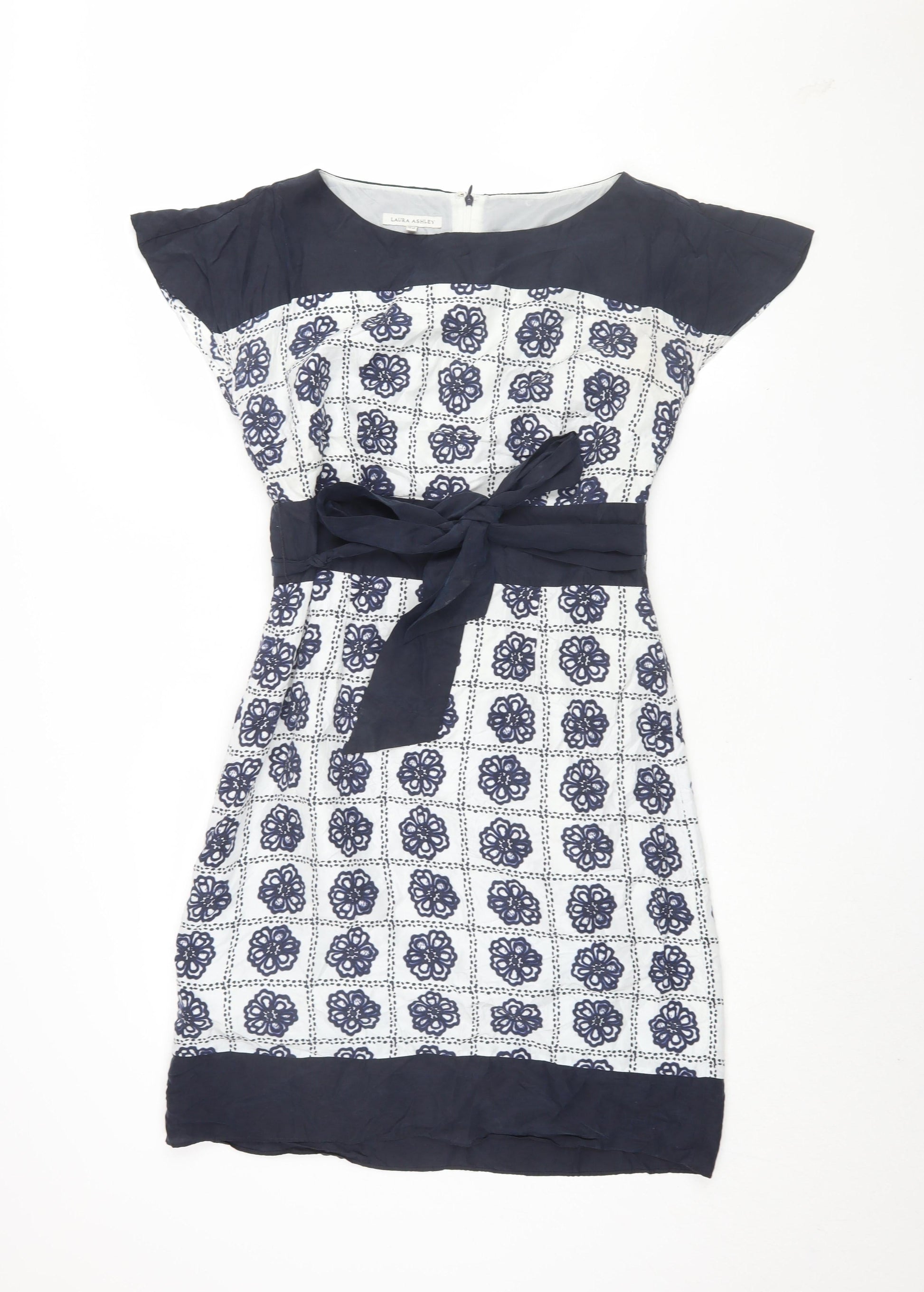 Laura Ashley Women's Blue Geometric Silk Shift Dress Size 12
