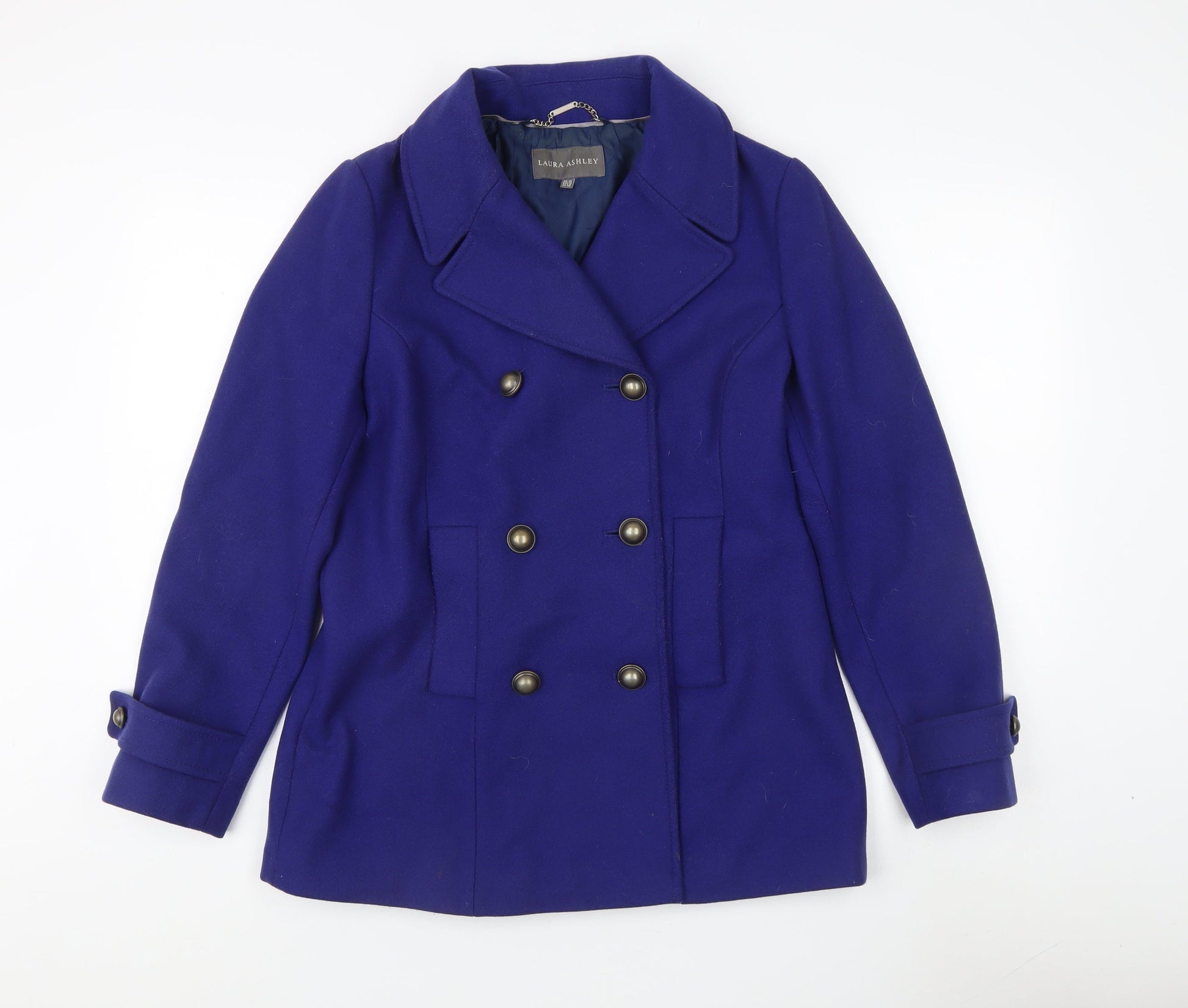 Laura Ashley Women's Blue Pea Coat Size 12 Wool Blend