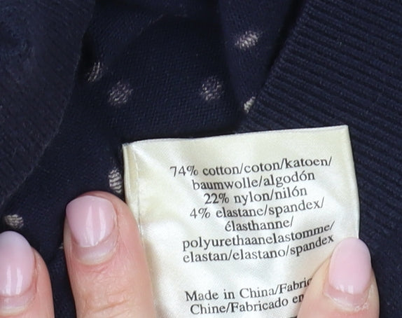 Laura Ashley Women's Blue Polka Dot V-Neck Jumper Size 10