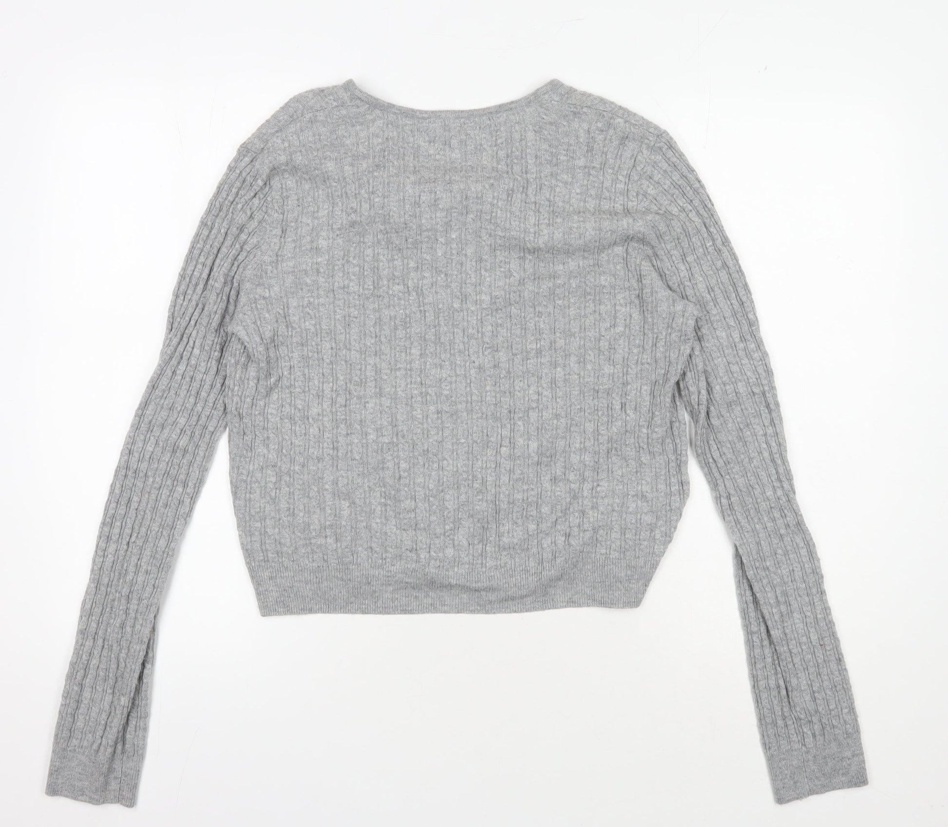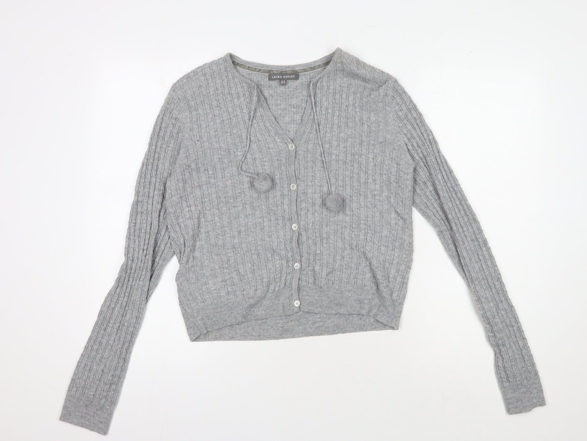 Laura Ashley Women's Grey Cable-Knit Cardigan, Size 14