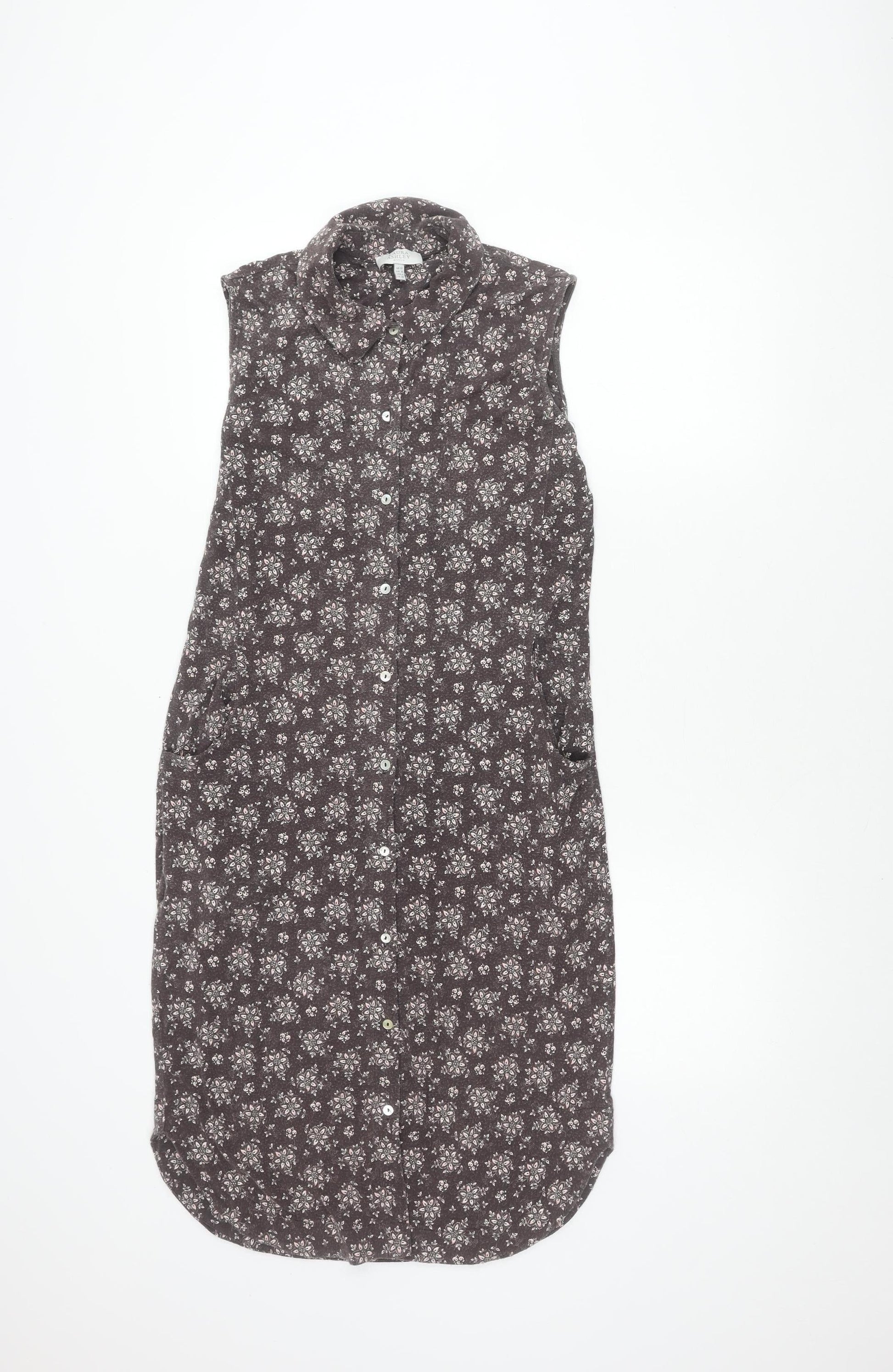 Laura Ashley Women's Grey Floral Shirt Dress Size 10