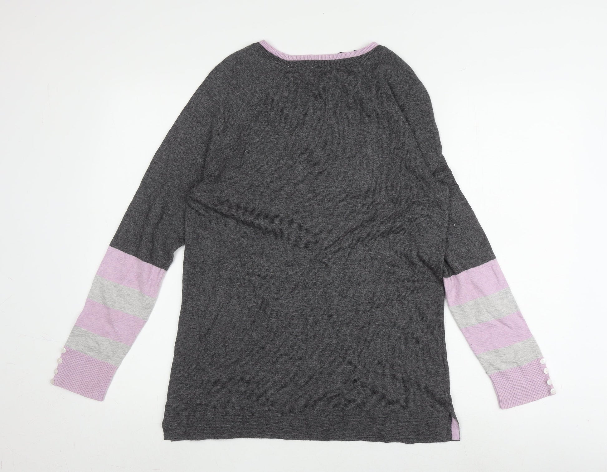 Laura Ashley Women's Grey Striped Jumper UK 10