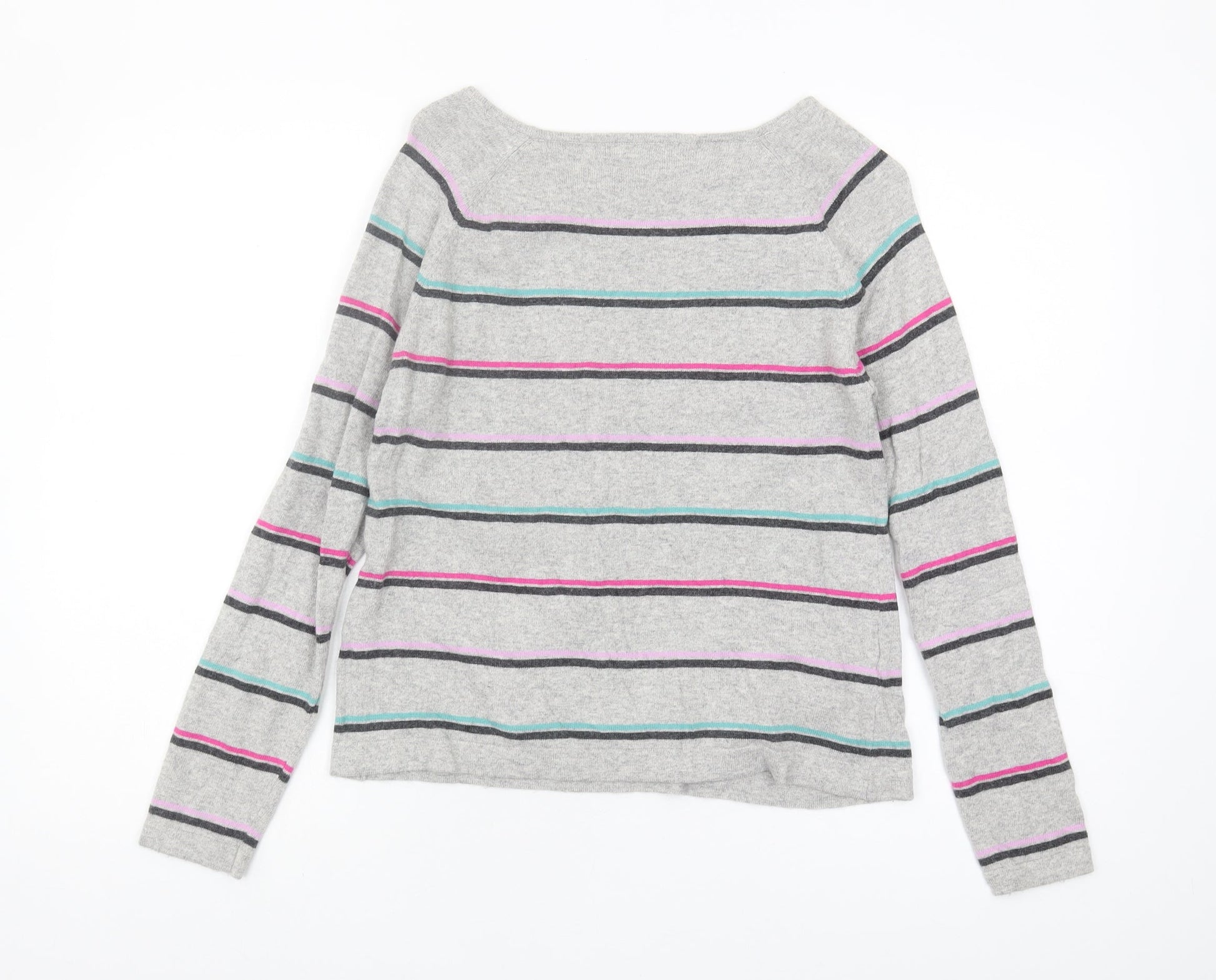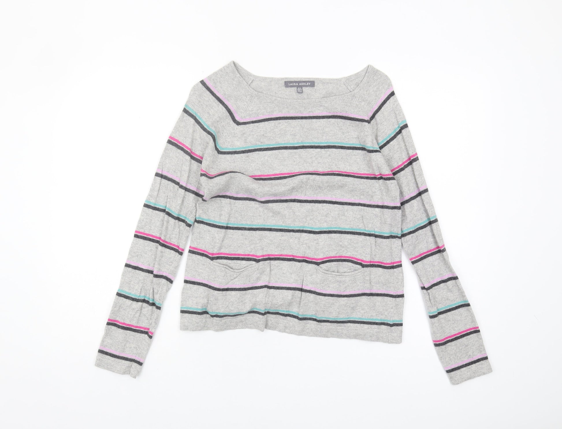 Laura Ashley Women's Grey Striped Knit Jumper, Size S