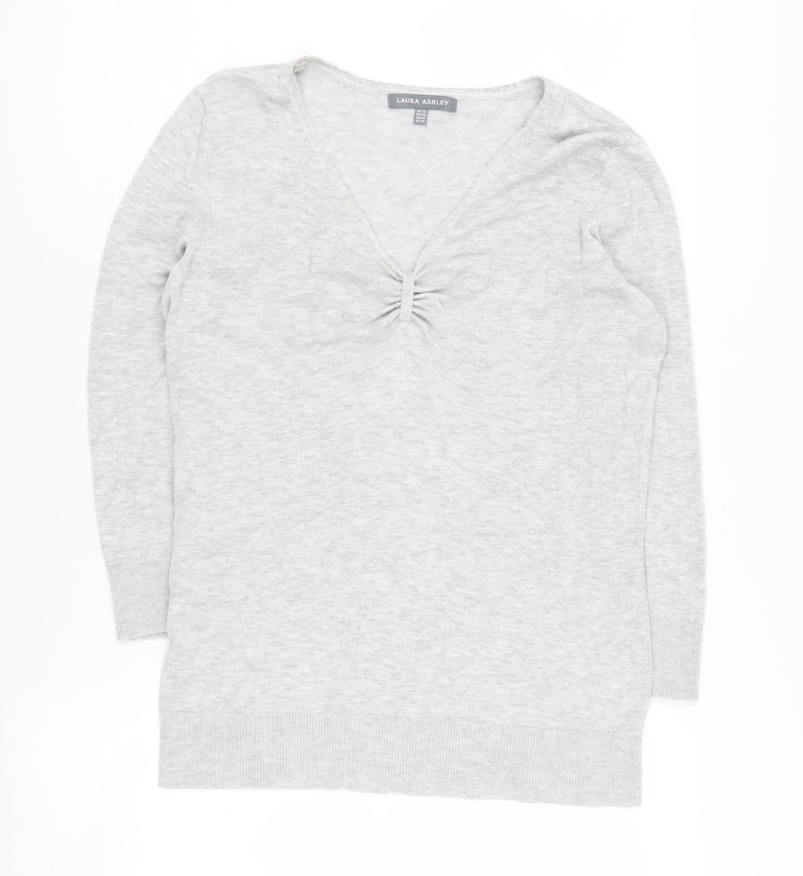 Laura Ashley Women's Grey V-Neck Jumper Size 12