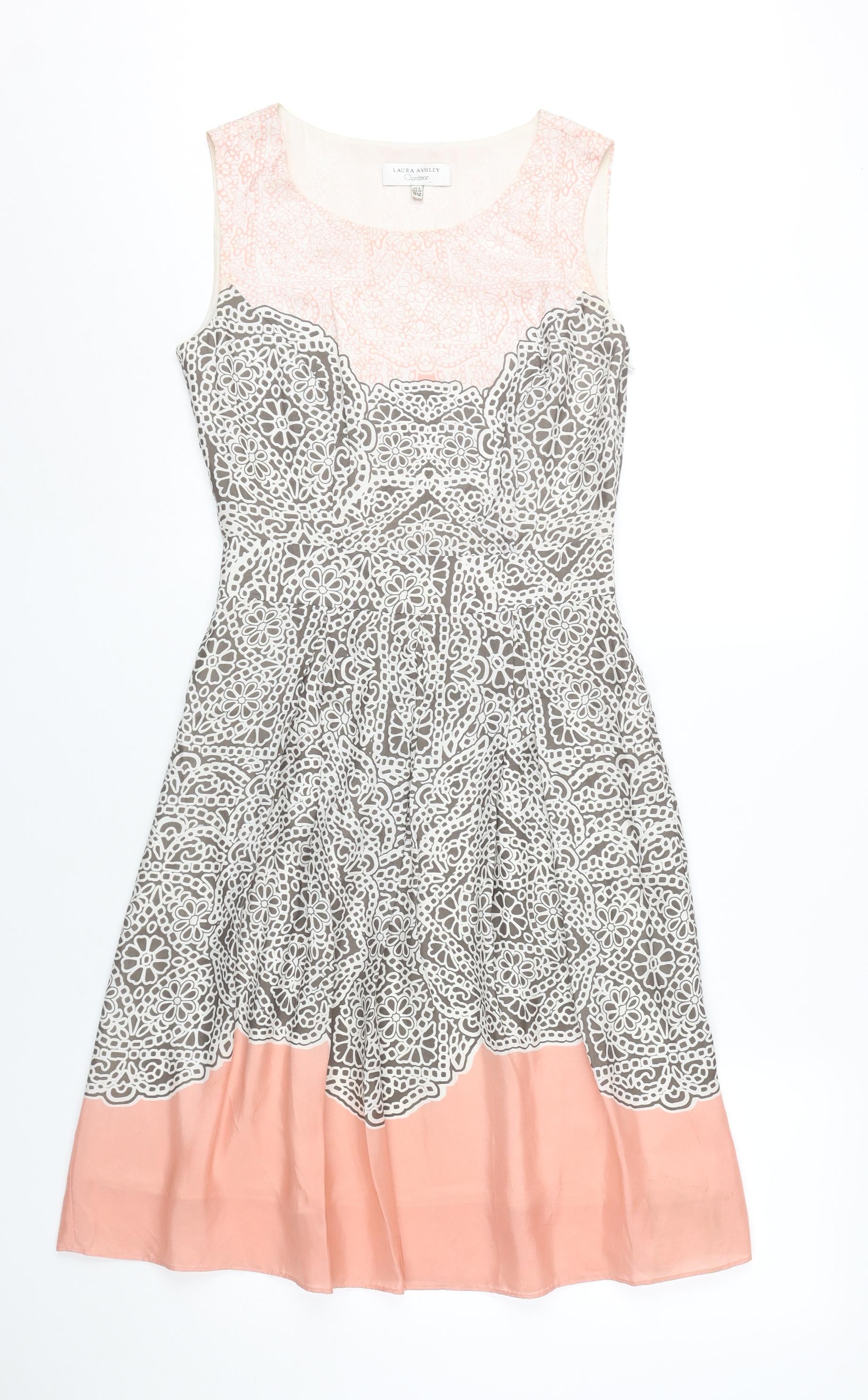 Laura Ashley Women's Pink Silk A-Line Dress, Size 8