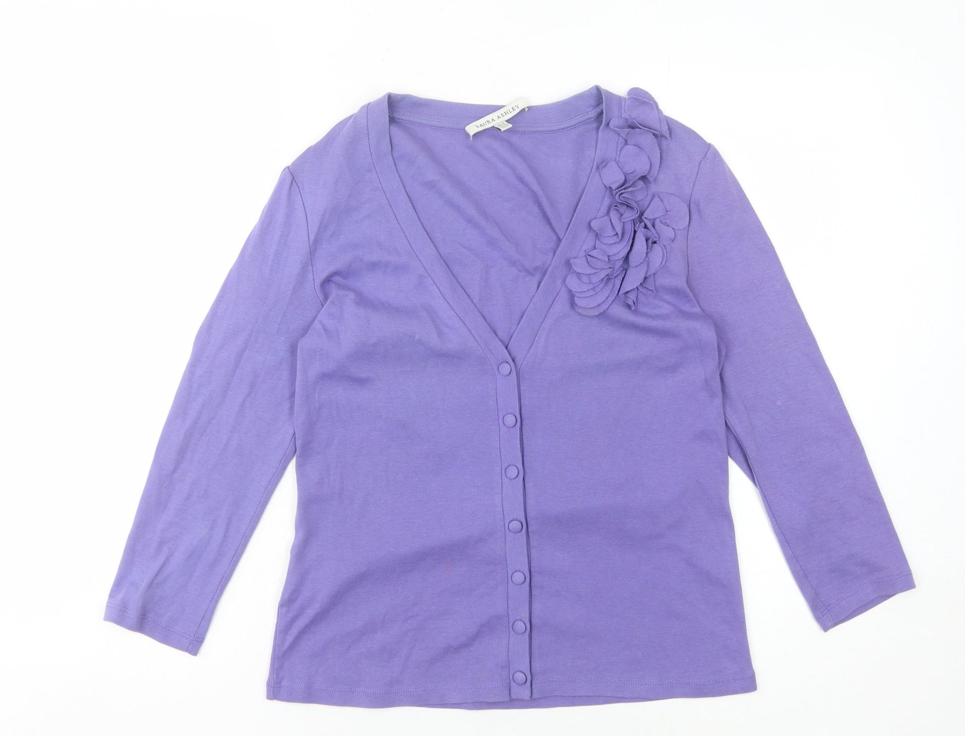 Laura Ashley Women's Purple Ruffle Cardigan Size 12