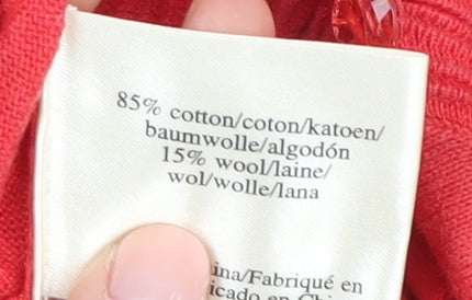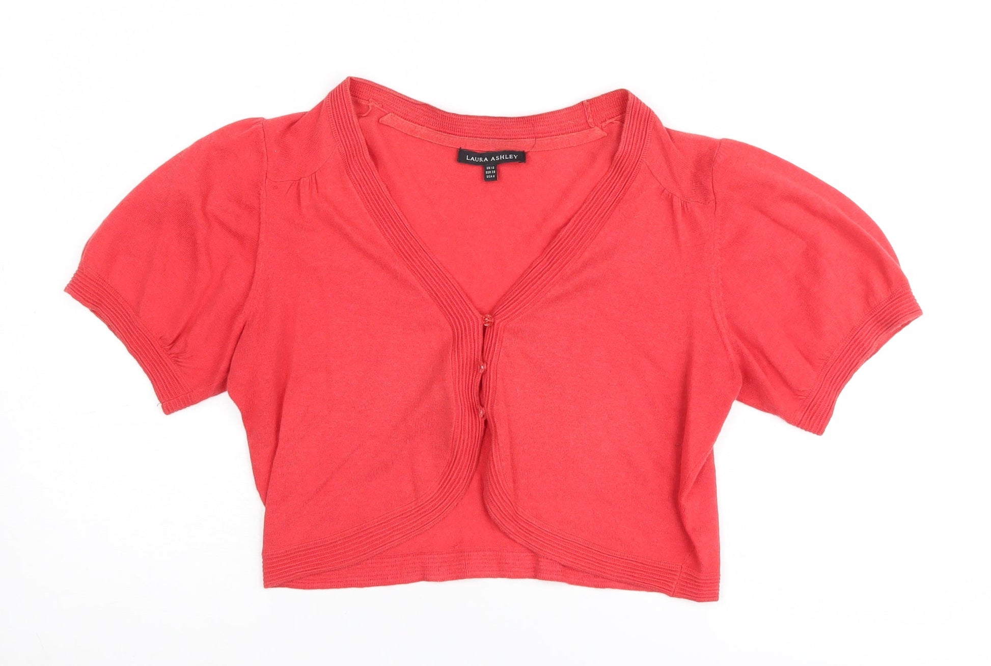 Laura Ashley Women's Red Cardigan, Size 12 V-Neck Puff Sleeve