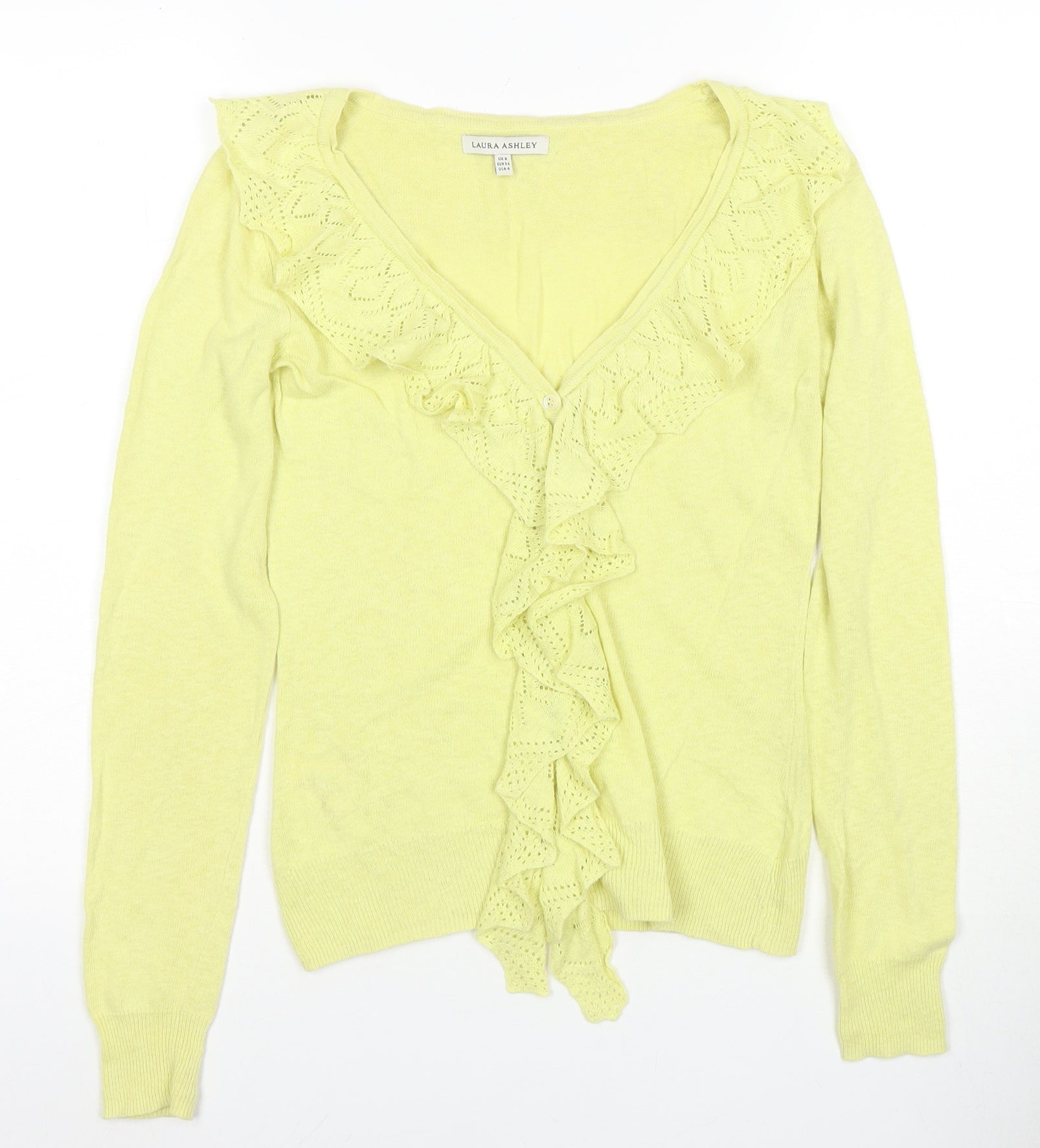 Laura Ashley Women's Yellow Cardigan UK 8 V-Neck Linen Cotton