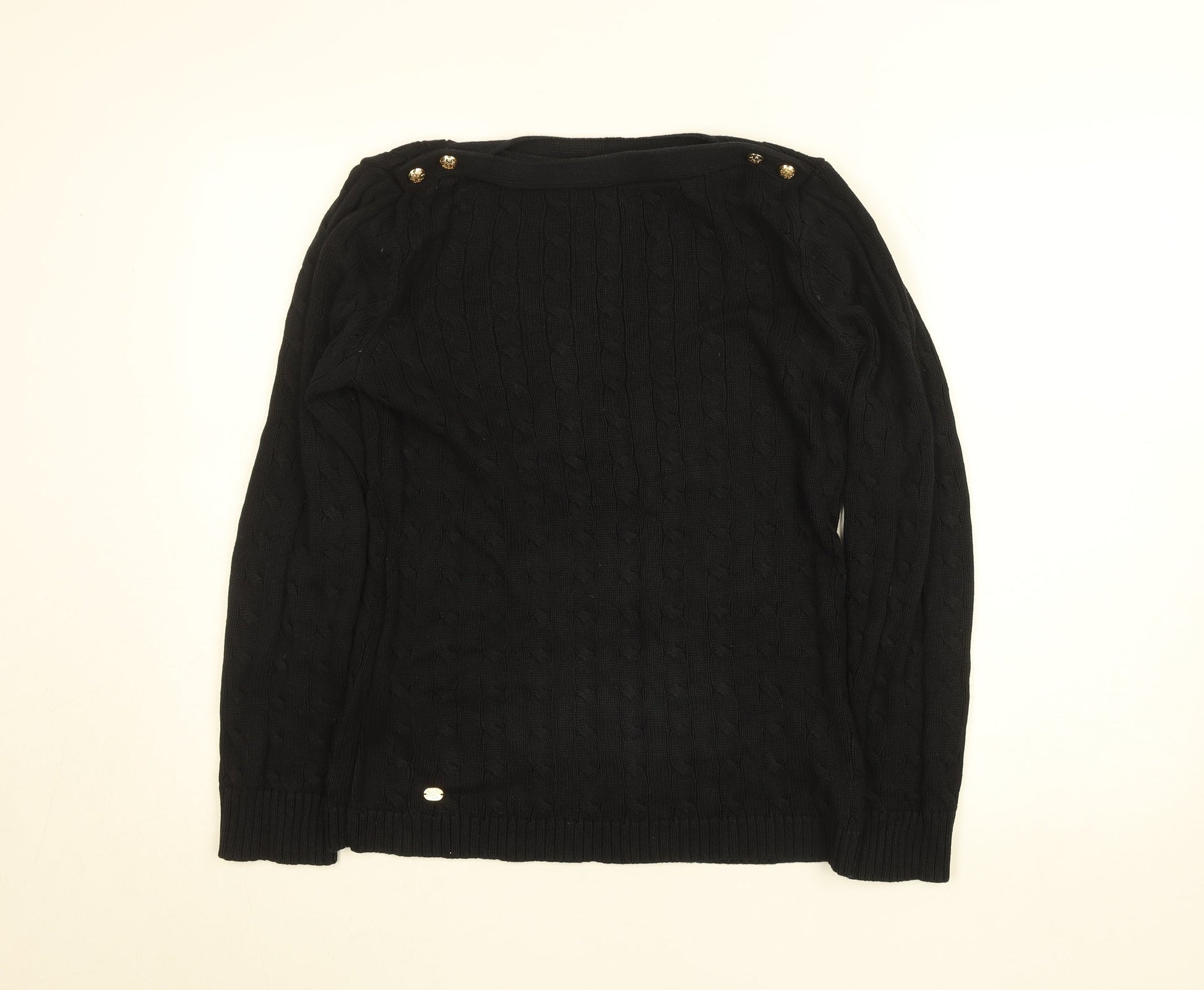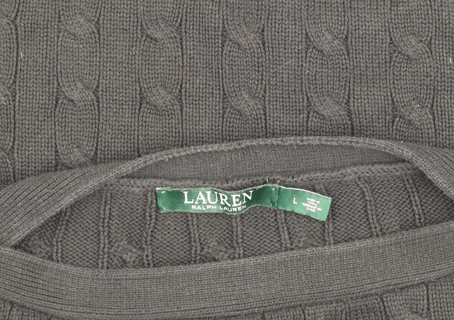 Lauren Ralph Lauren Women's Black Cable Knit Cotton Jumper L
