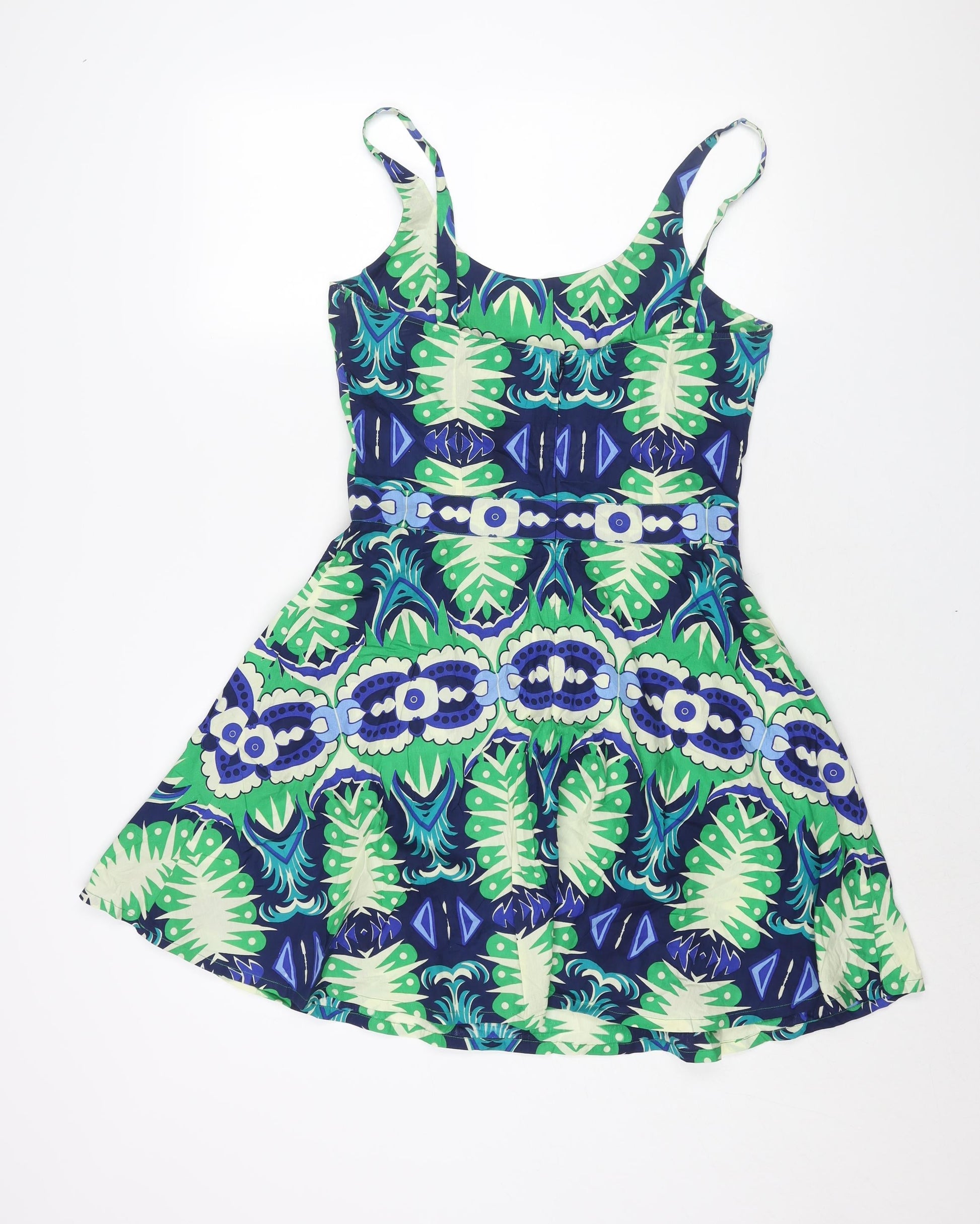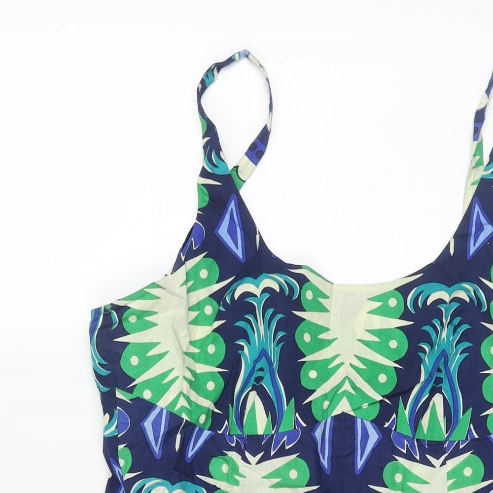 Le Sirenuse Womens Blue Geometric Cotton A-Line Size 14 Scoop Neck Zip