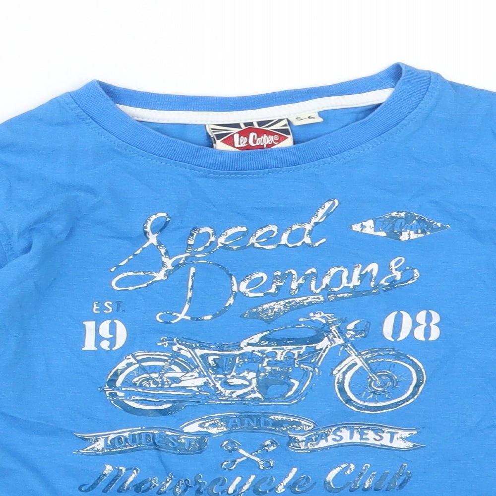 Lee Cooper Boys Blue Colourblock Cotton Basic T-Shirt Size 5-6 Years Round Neck - SPEED DEMONS