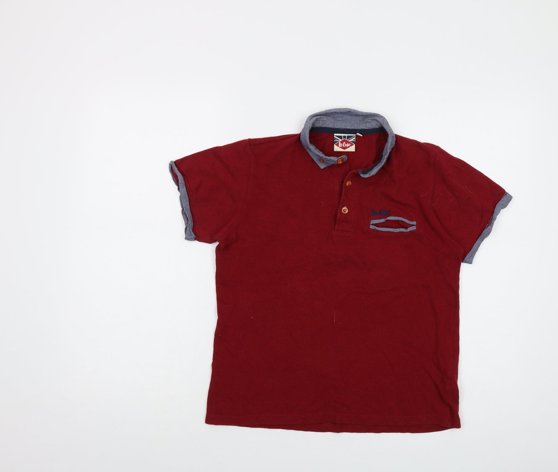 Lee Cooper Boys Red Cotton Basic Polo Size 11-12 Years Collared Button